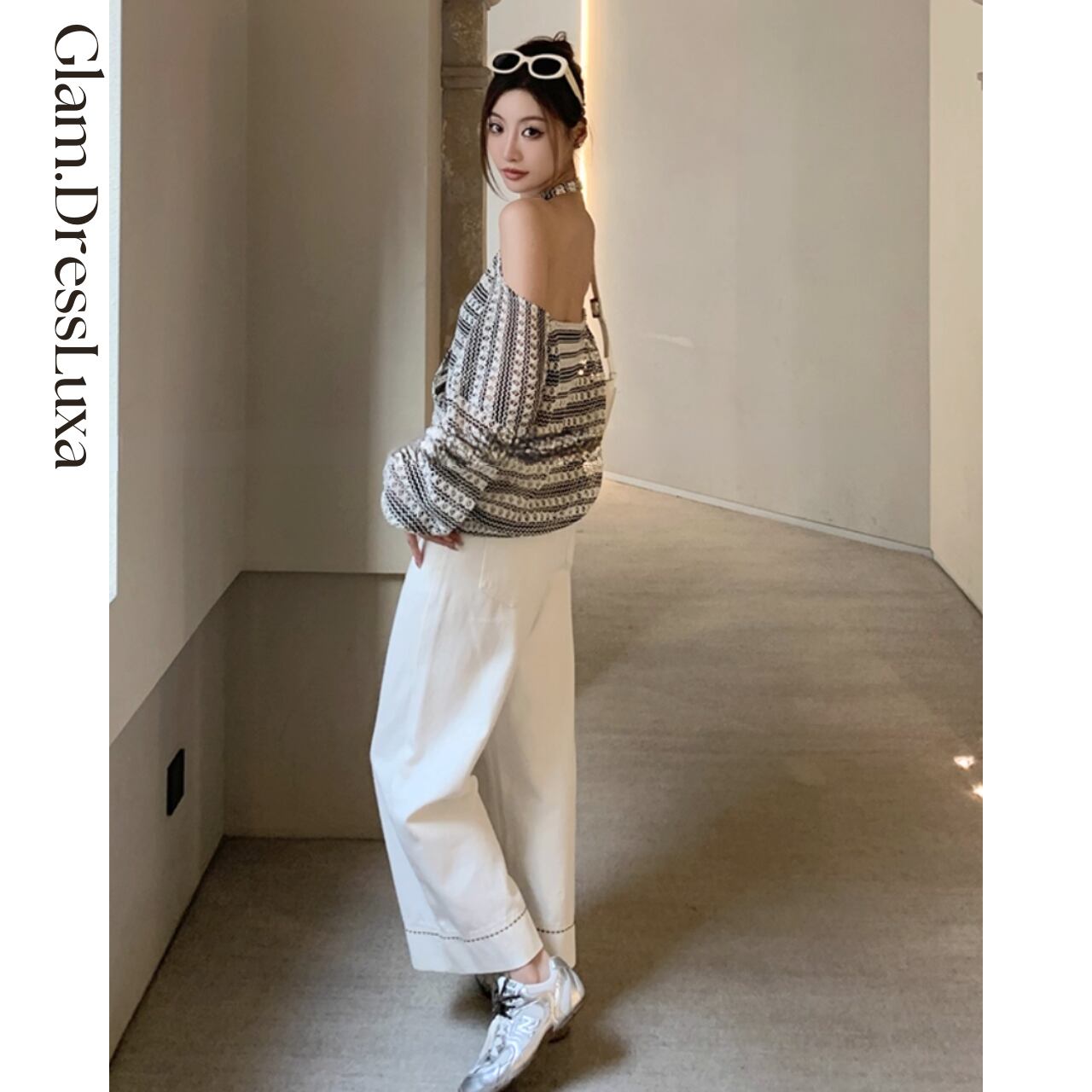 首元から背中にかけてすっきりとしたカッティングが、華奢見えを叶えてくれます。