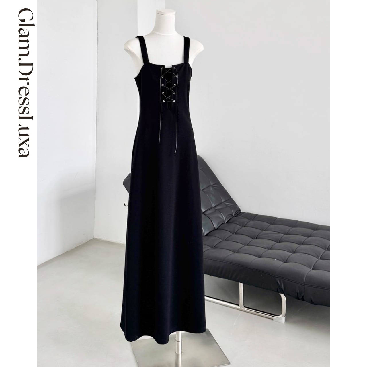 レースアップデザインマキシワンピース_W21