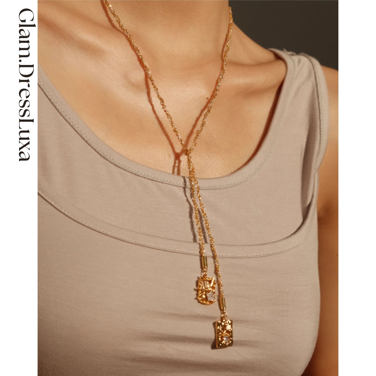 ・華やかさと遊び心を兼ね備えたYラインシルエットのゴールドネックレス。異なる2種類のチャームが胸元で揺れ、動くたびにきらめきをプラス。繊細なチェーンと立体感のあるチャームの組み合わせが、1本で存在感を放ちます。カジュアルからキレイめまで幅広くマッチし、首元に華奢さと品を演出。単体使いはもちろん、レイヤードにもおすすめの1本です。