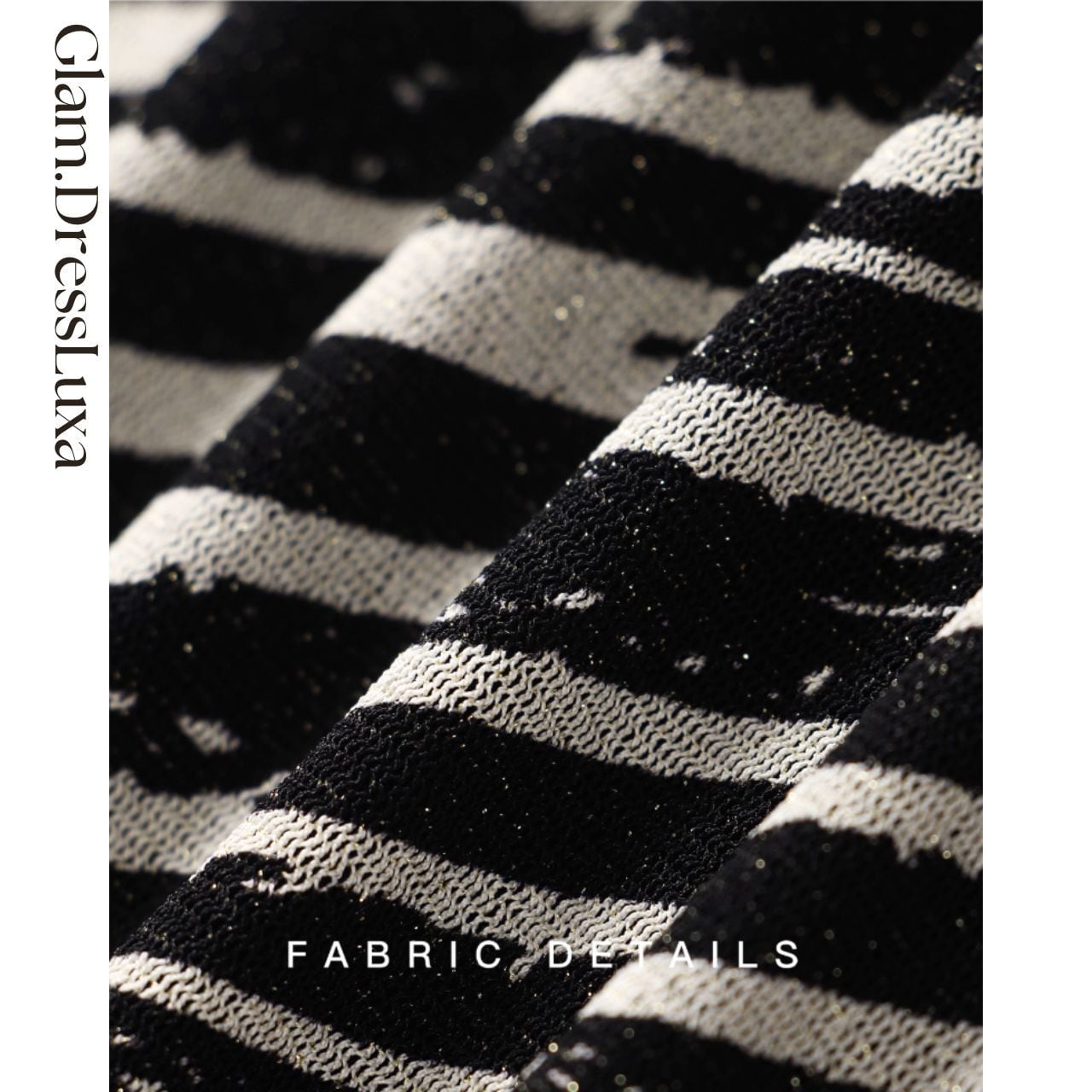 ・シアーなメッシュ生地にグリッターを織り込み、上品な光沢を放つゼブラパターンのロングスリーブトップス。デコルテを美しく魅せるドレープネックと、細身のシルエットが女性らしさを引き立てます。程よい透け感がセンシュアルなムードを演出し、デニムやレザーパンツとの相性も抜群。夜のお出かけや特別なシーンにも映える、存在感のある一枚です。