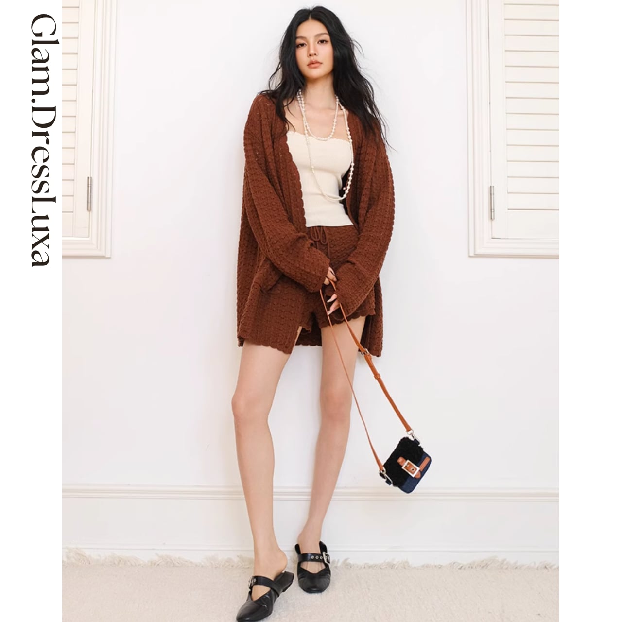 ・立体的な編み模様が魅力のクロシェニットセットアップ。