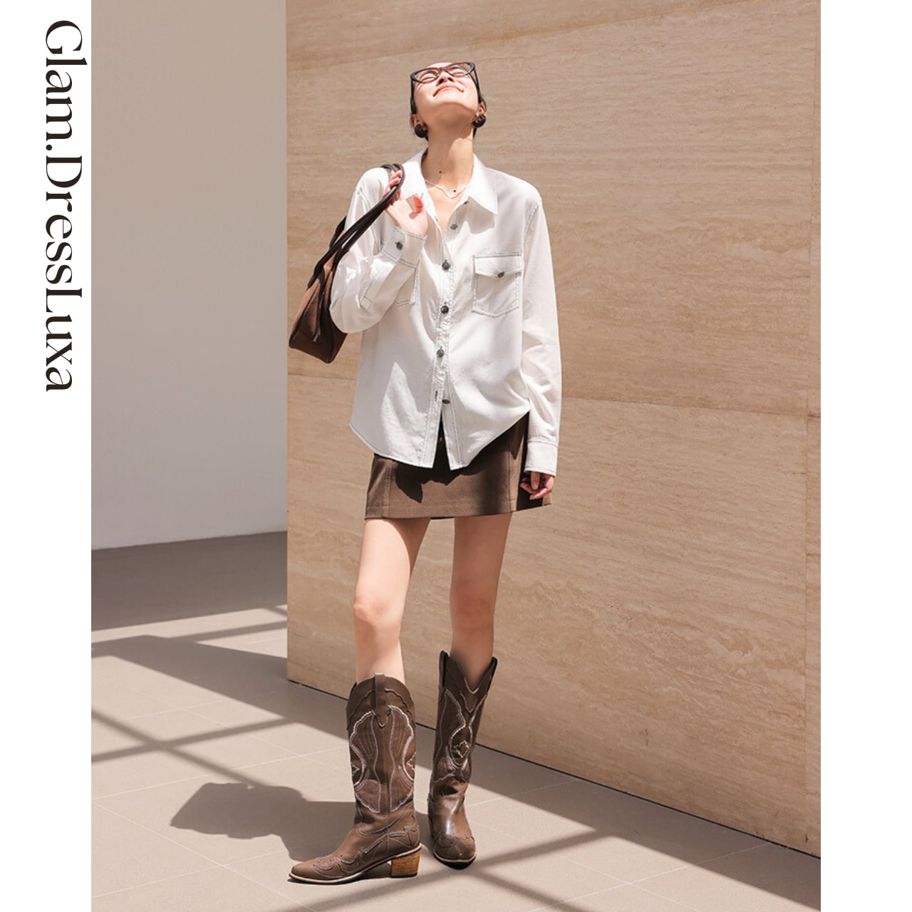 ・リネン×リヨセル素材をブレンドした、ナチュラルな風合いのシャツ。程よいハリ感と柔らかな落ち感が特徴で、通気性も高く季節を問わず快適に着用いただけます。コントラストの効いたステッチデザインがシンプルながらもモードな印象を演出。ドロップショルダー気味のシルエットで抜け感のある着こなしが叶い、デニムからスラックスまで幅広いスタイリングにマッチします。羽織りとしても、インナーとしても活躍する万能アイテムです。