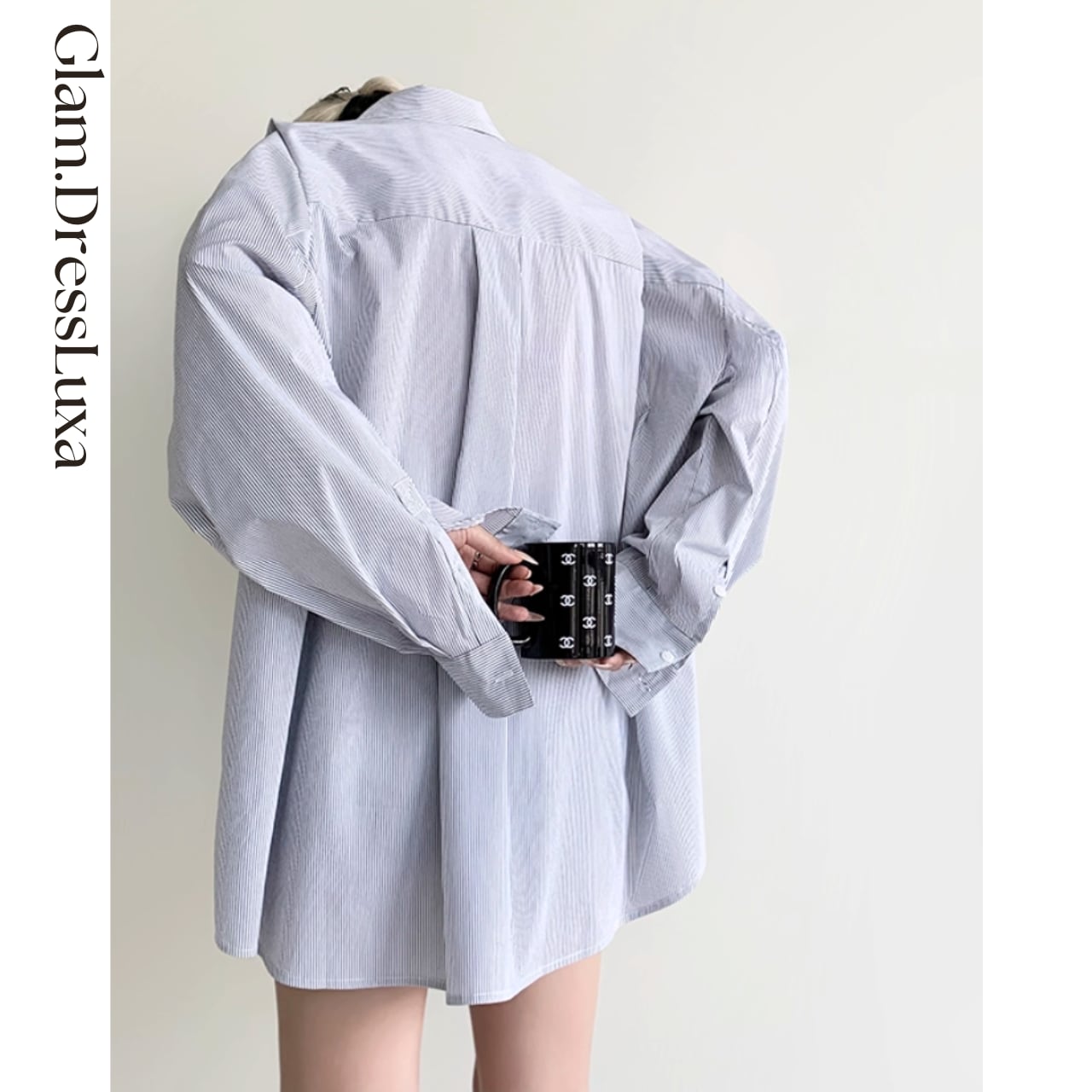 ・こなれ感を演出するオーバーサイズのストライプシャツ。