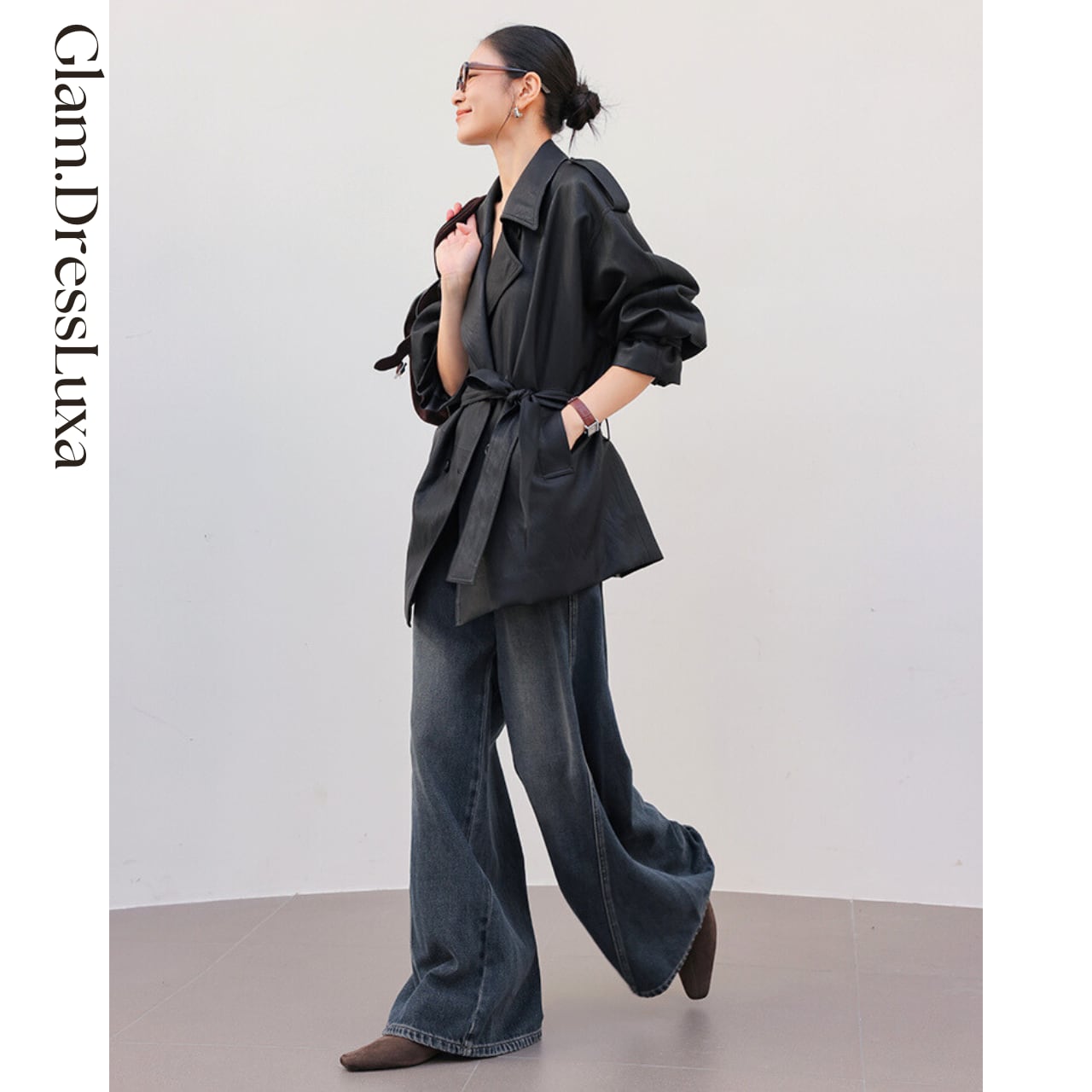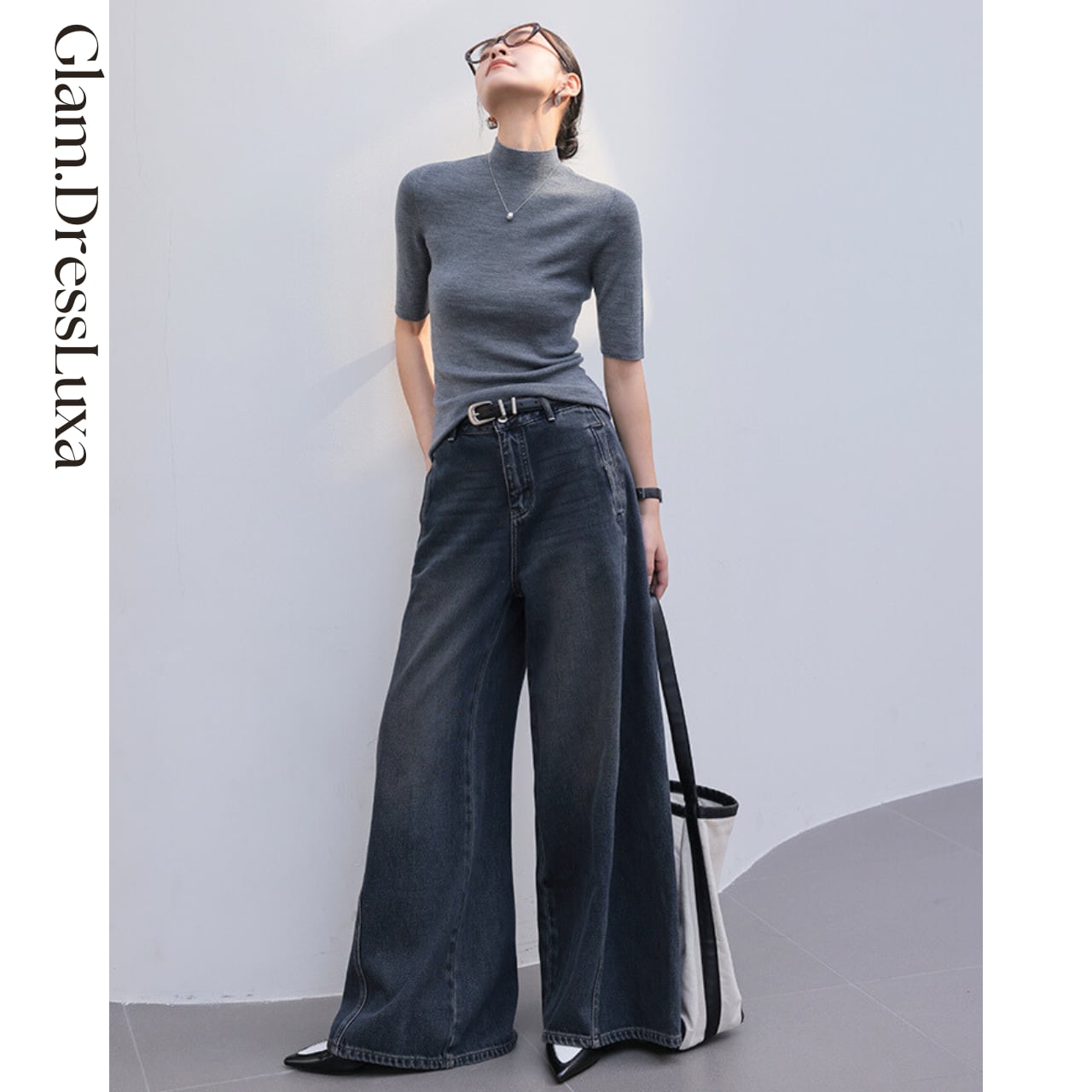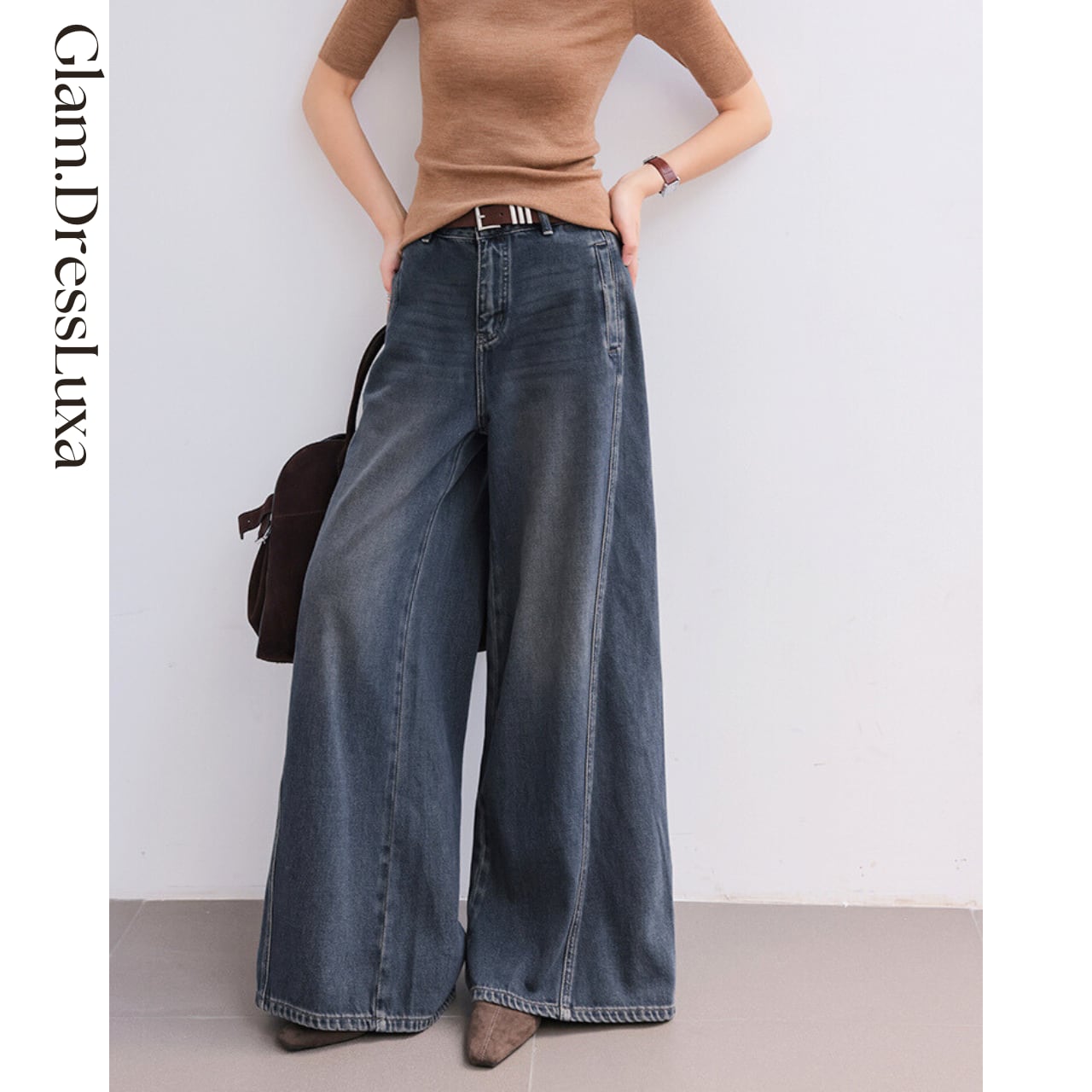 ・深みのあるダークブルーにウォッシュ加工を施した、存在感抜群のワイドパンツ。