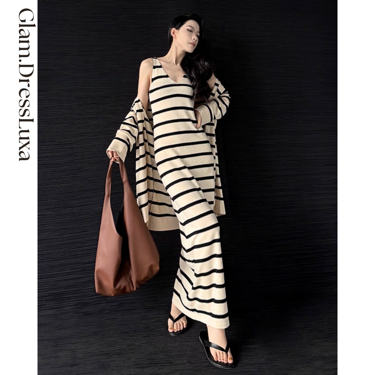 ・リラクシーな雰囲気と上品さを兼ね備えた、カーディガンとワンピースの2点セット。