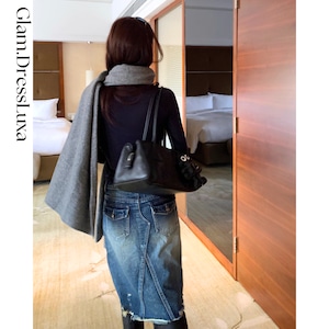 ・裾のフリンジ加工がポイントになったヴィンテージライクなデニムスカート。