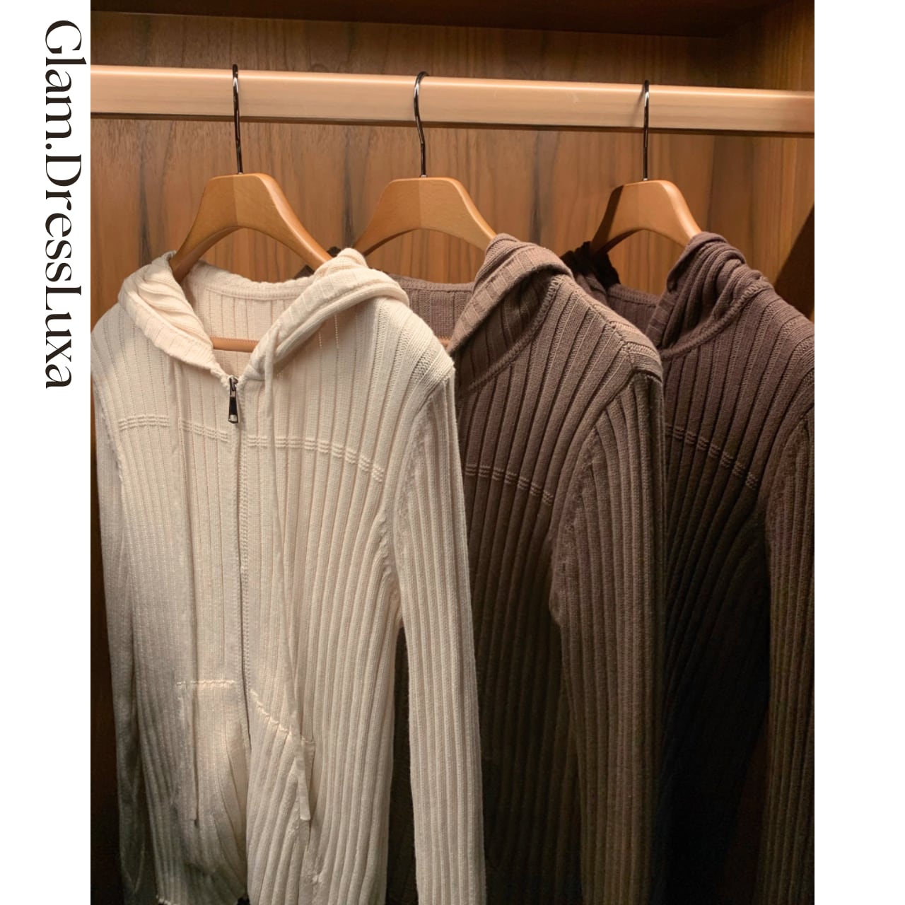 Rib Knit Wジップ フーディ カーディガン/3color_T1547