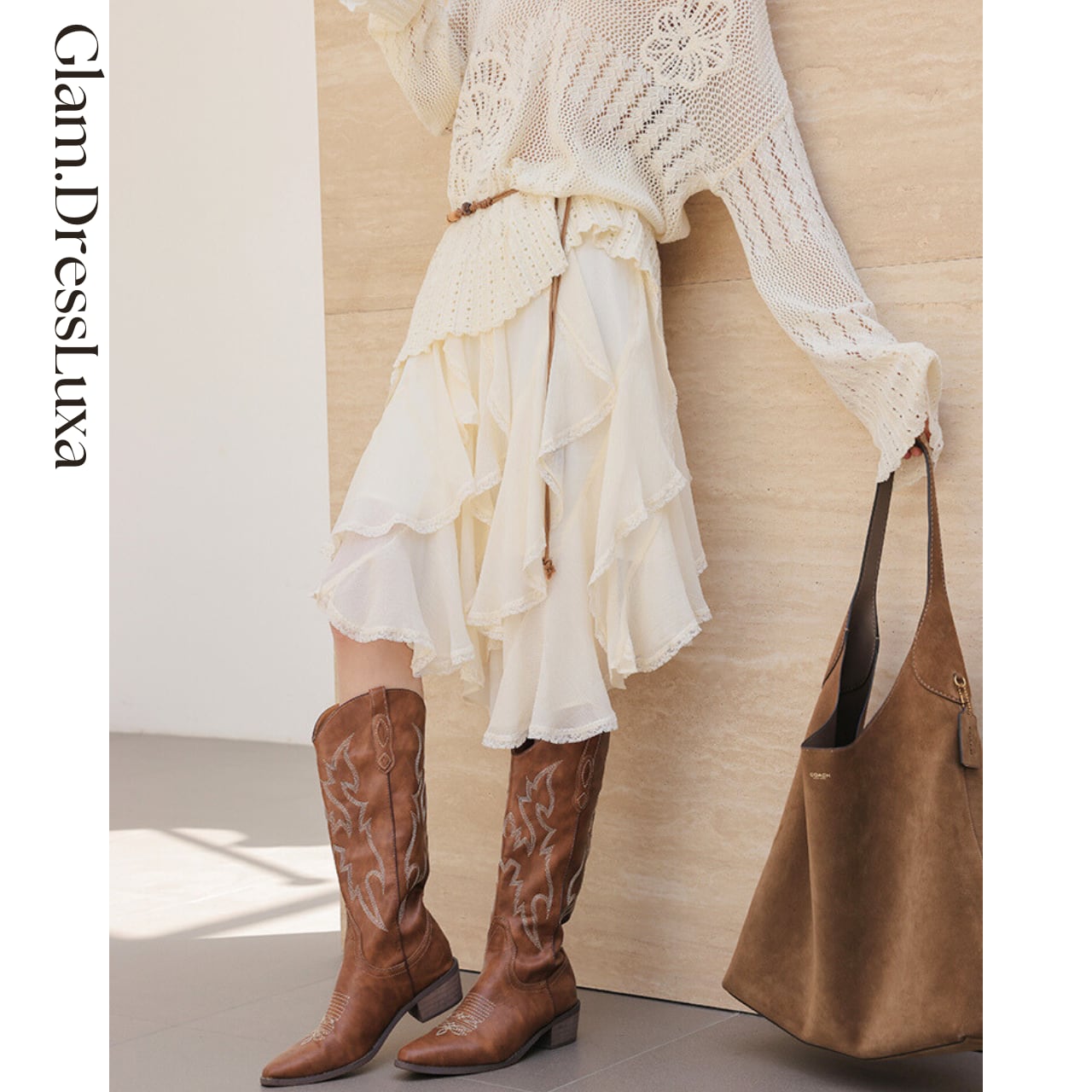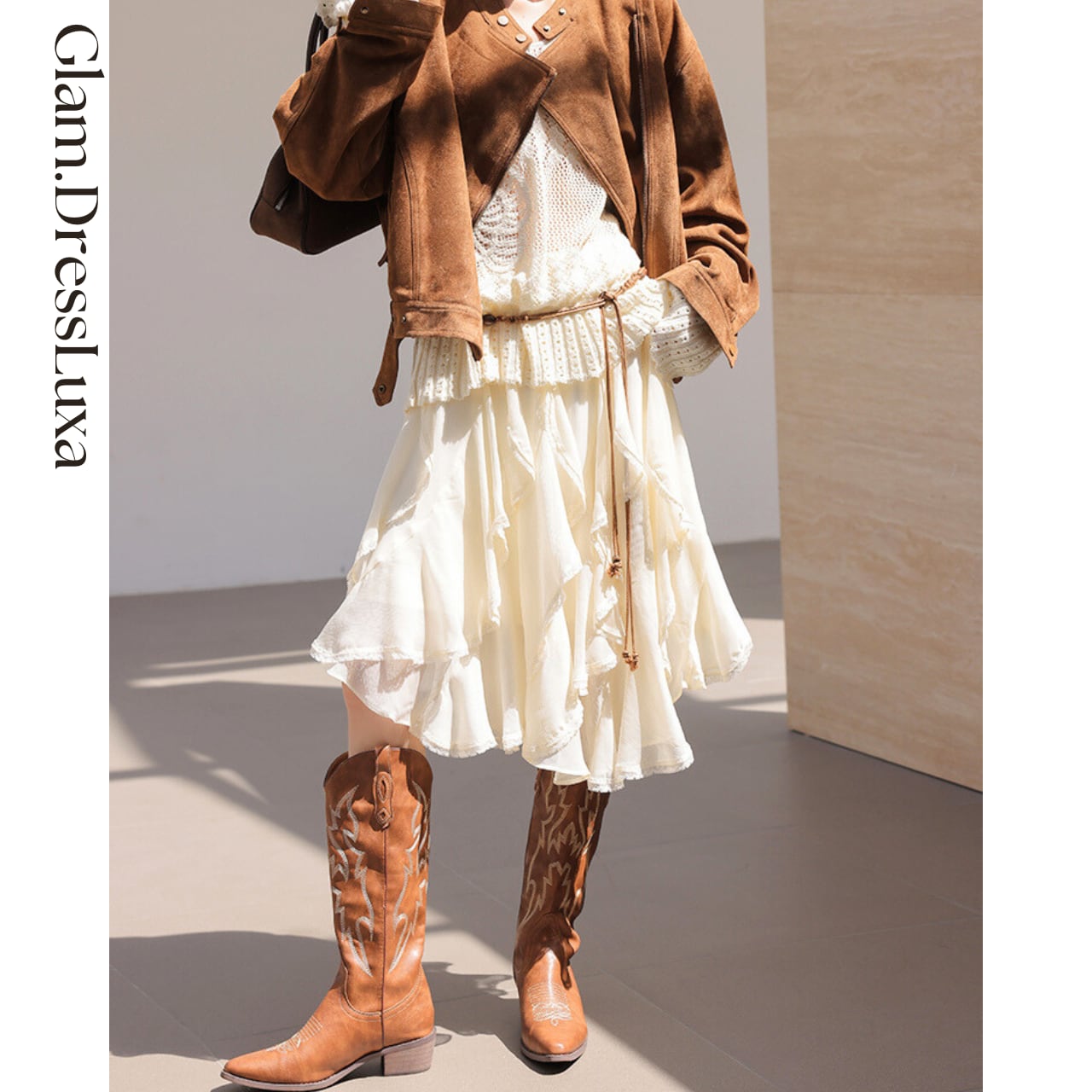 ・軽やかな生地感と動きのあるフリルが特徴のアシンメトリースカート。