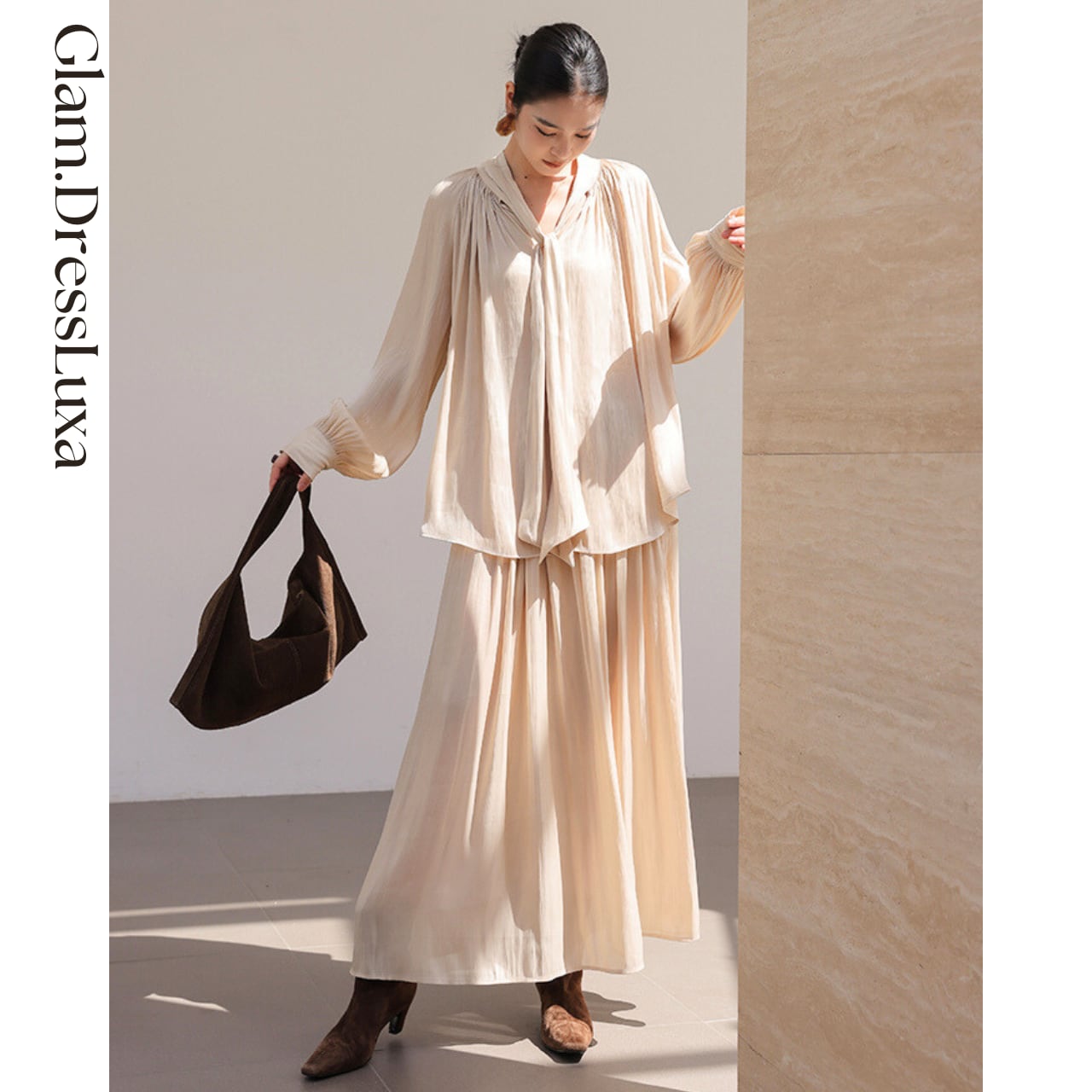 ・エアリーな落ち感と繊細なプリーツが魅力の上下セットアップ。