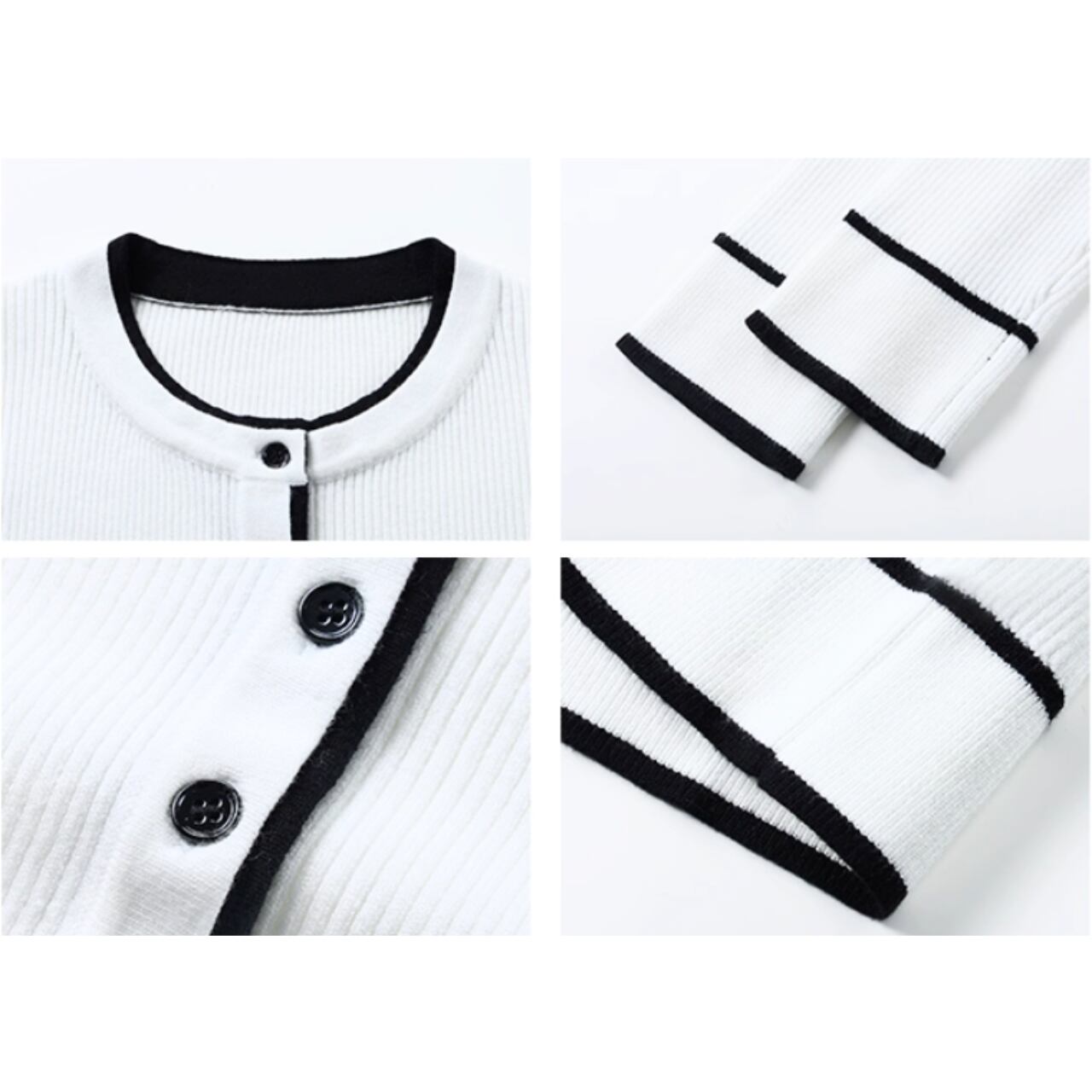 ・すっきりとしたシルエットに映える、コントラストカラーのトリミングがポイントのリブニットカーディガン。