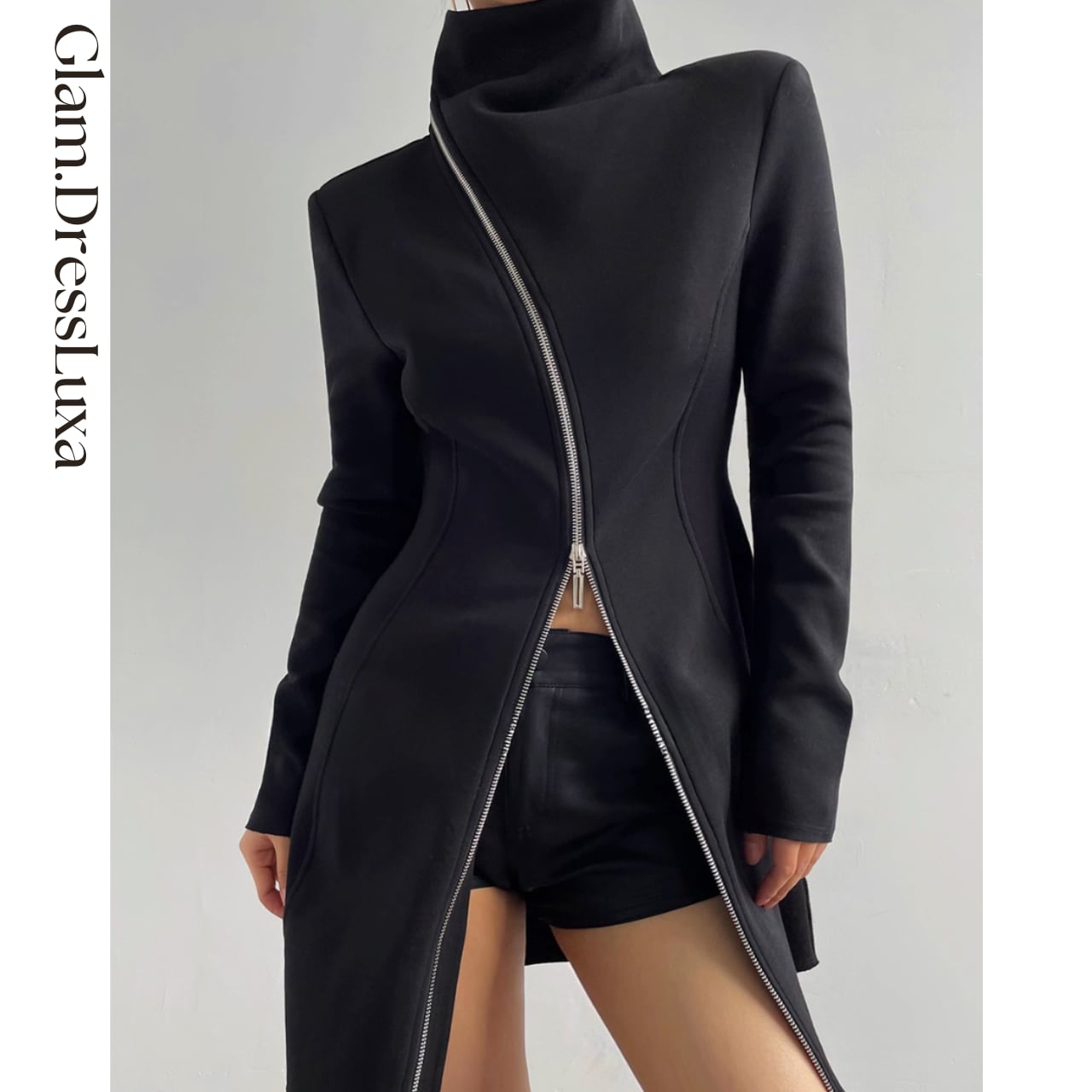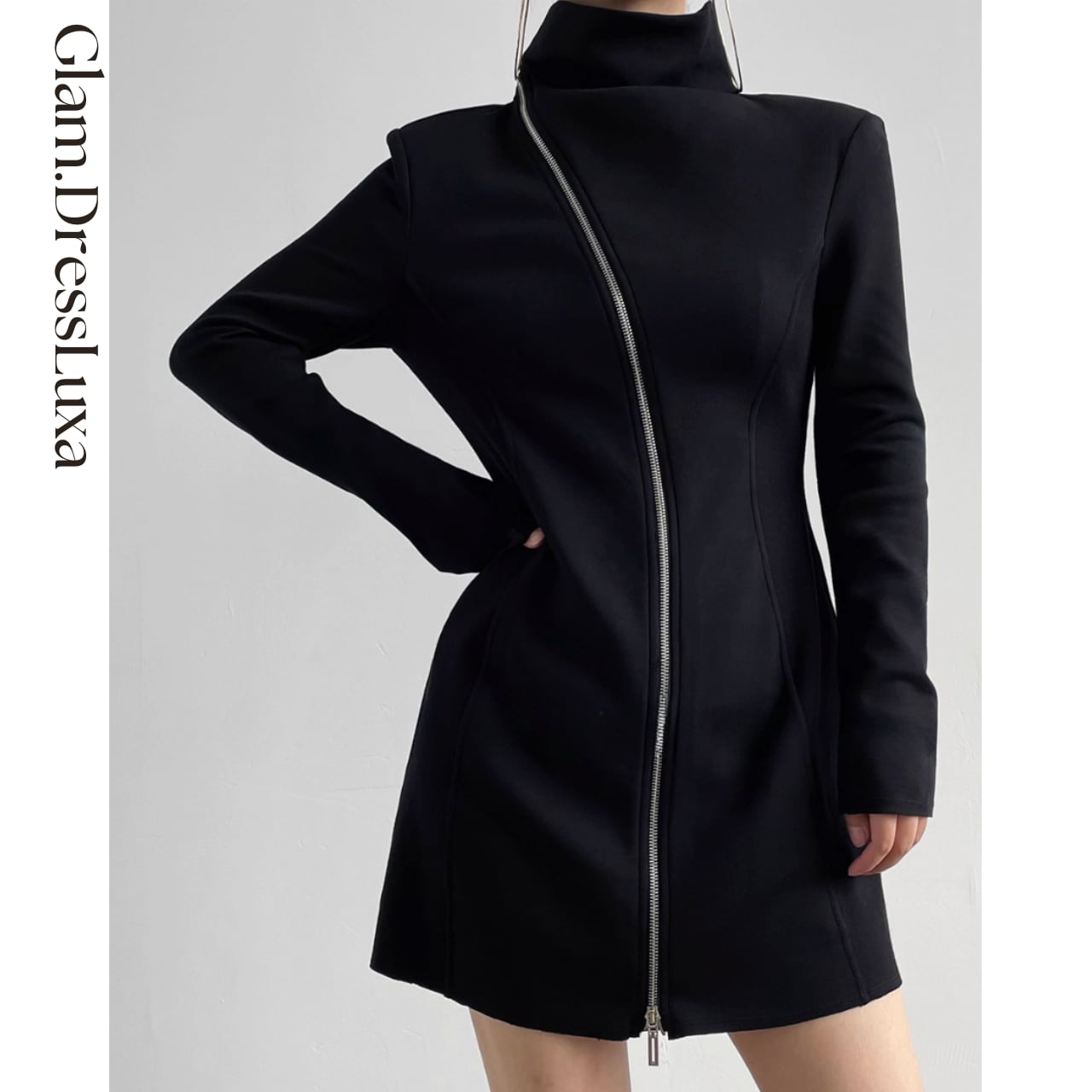 ・アシンメトリーに走るジップラインが印象的なドレスコート。