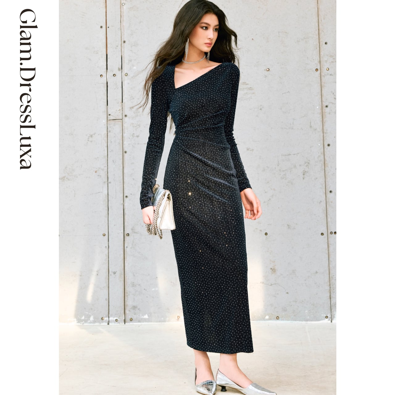 スパンコールAsymmetry Glitter Dress/2color_W977