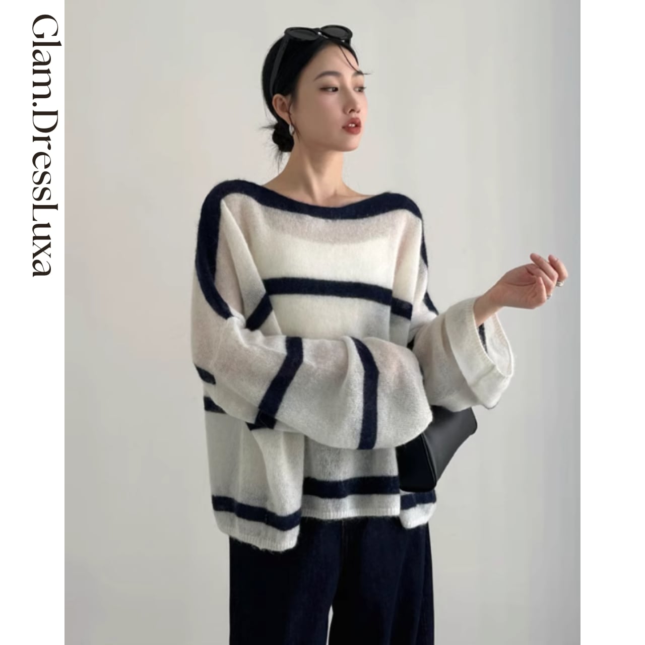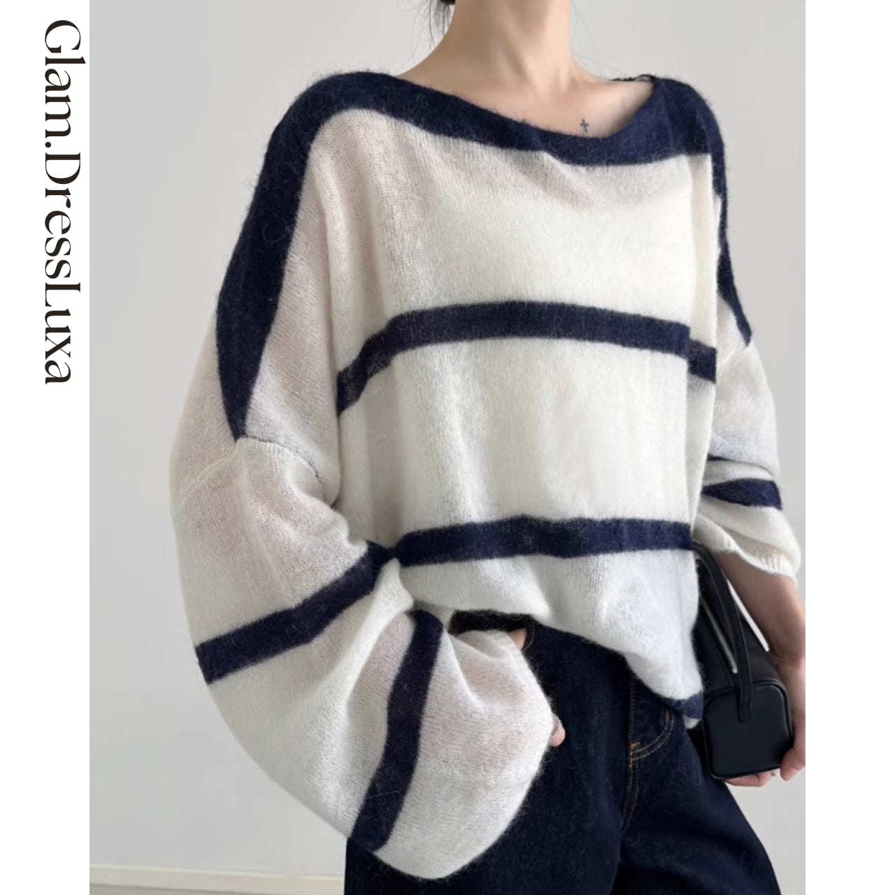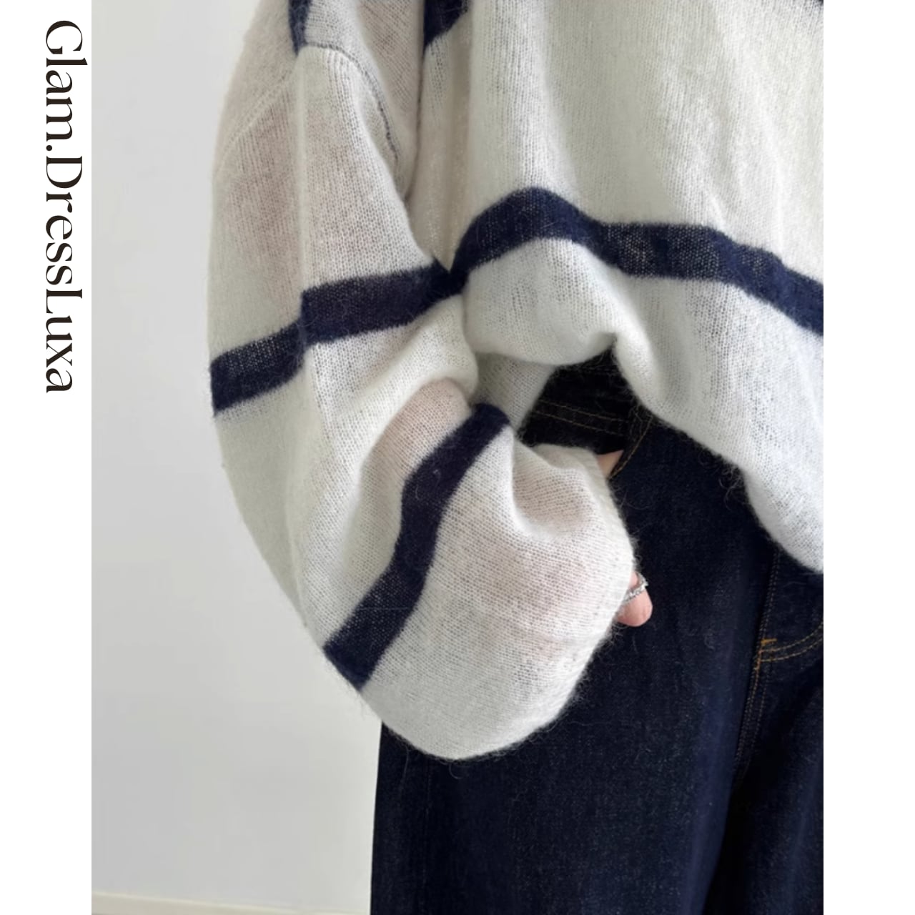 ・ふんわりとした柔らかなニットに、大胆なボーダーラインを効かせた大人カジュアルな一枚。ゆったりとしたシルエットで抜け感を演出しつつ、軽やかな透け感が女性らしさを引き立てます。シンプルながら存在感があり、デニムやスカートなど様々なアイテムと相性抜群◎ 秋冬のデイリースタイルをぐっとおしゃれに仕上げてくれるアイテムです。