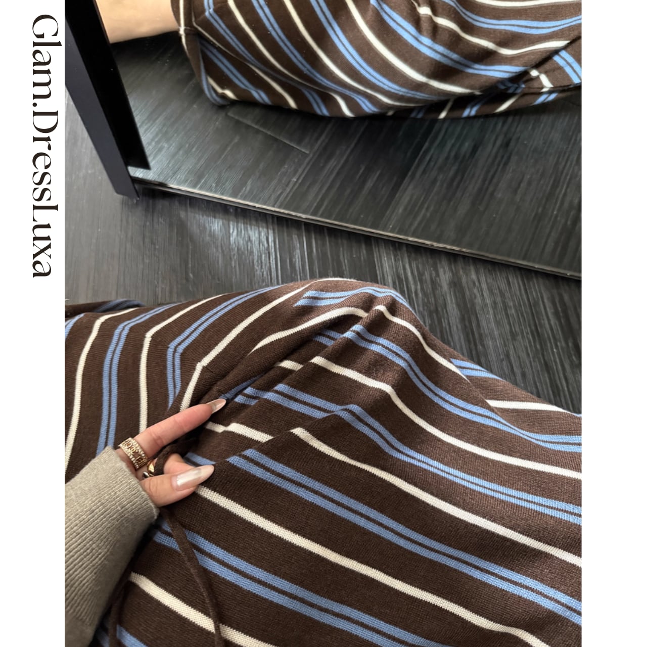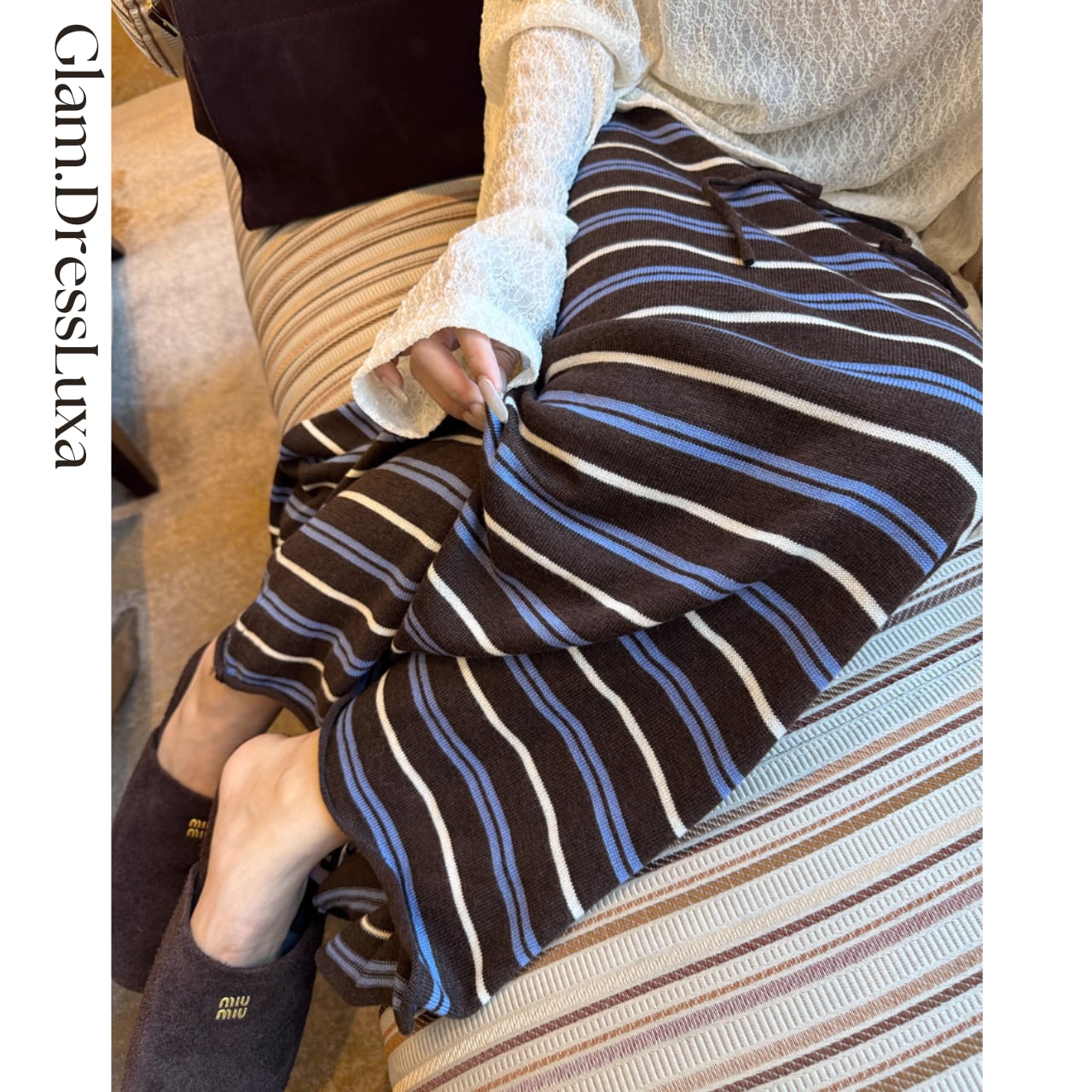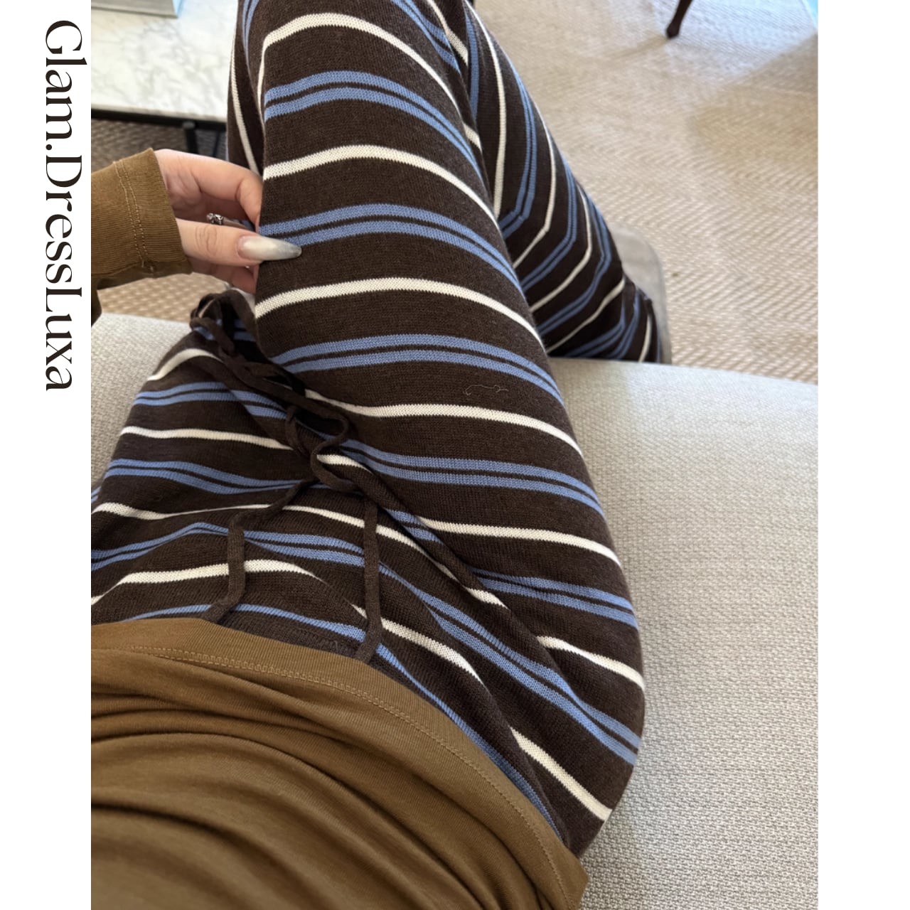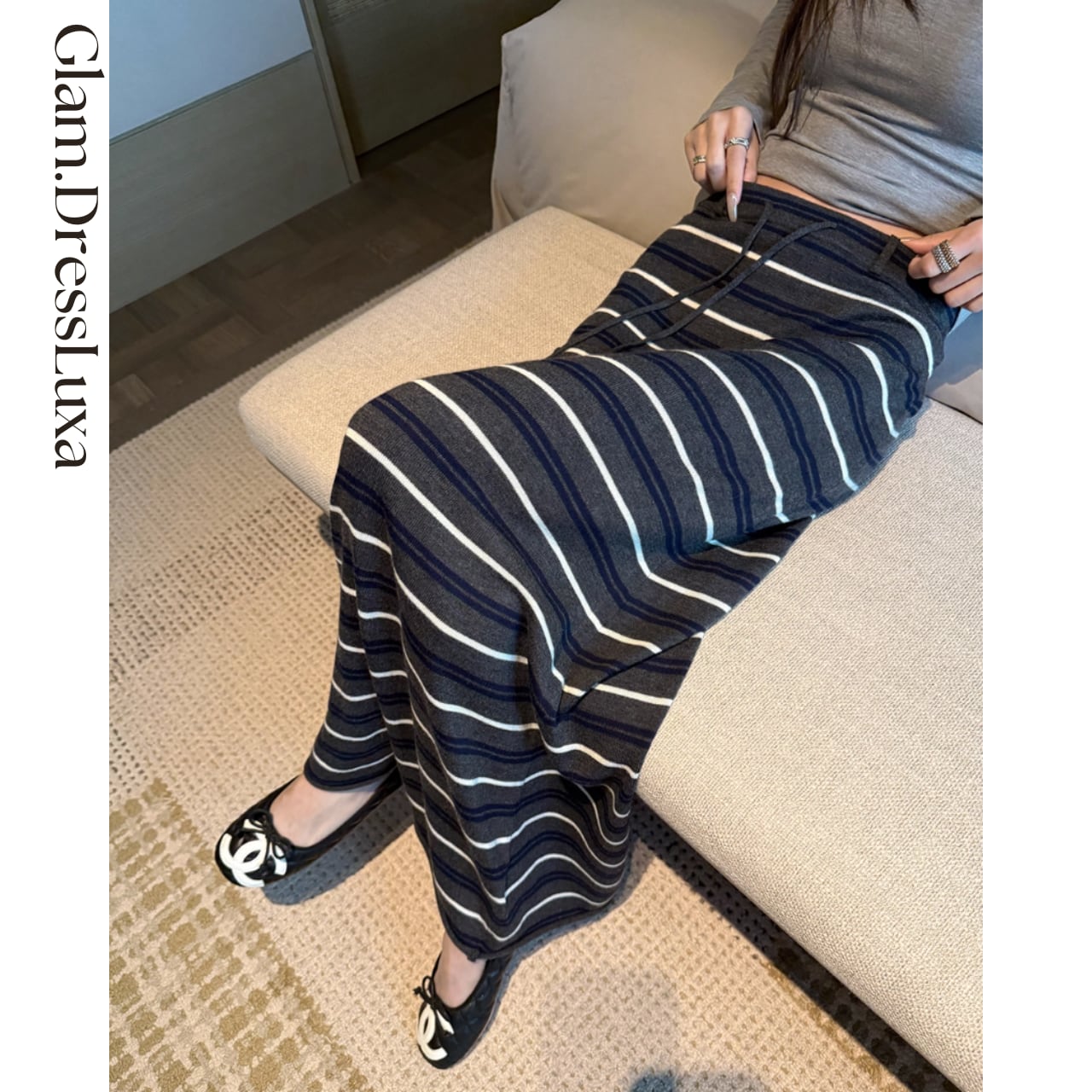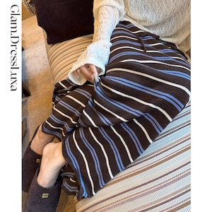 ・上品な光沢を持つウール混素材で仕立てられたストライプ柄ロングスカート。滑らかな肌触りと適度な厚みがあり、秋冬のシーズンに最適です。ウエストはドローストリング仕様で調整可能◎ リラックス感のあるシルエットながら、縦ラインを強調するストライプがスタイルアップを叶えてくれます。カジュアルからシックなコーデまで幅広く活躍する、大人のワードローブにおすすめの1枚です。