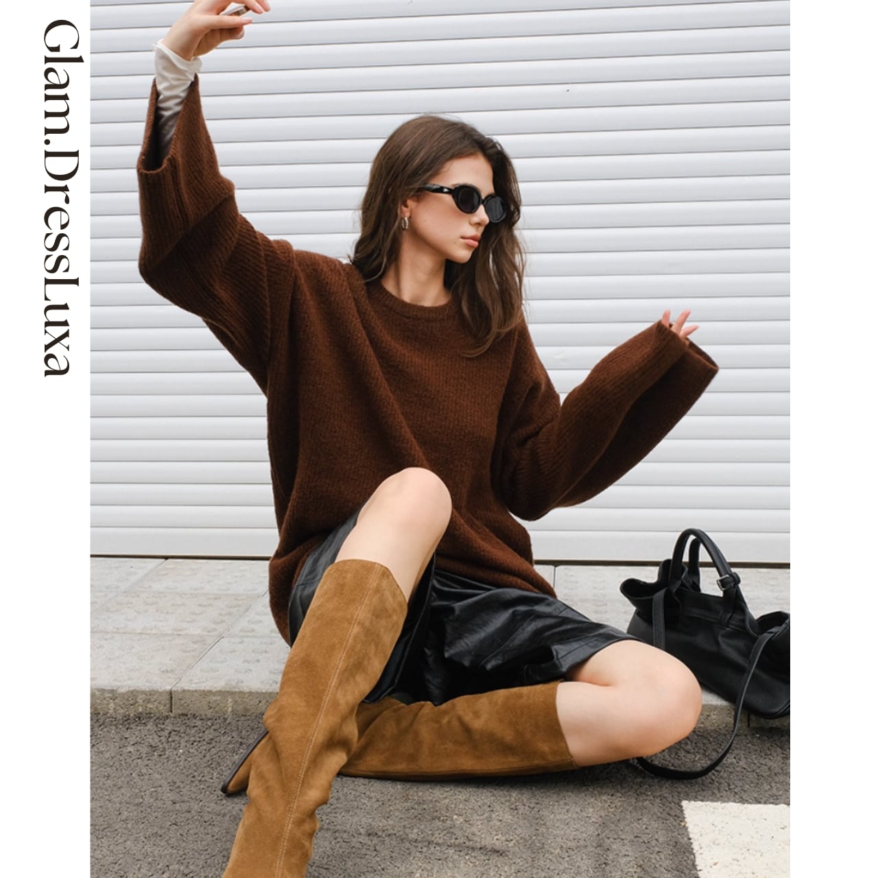 ・ざっくりとした編み地が魅力のオーバーサイズニット。ゆるやかに落ちるドロップショルダーと長めの袖丈がこなれ感を演出します。ワンピース風にも着られる着丈で、ブーツとの相性も抜群。軽やかで暖かい素材感は、秋冬のレイヤードスタイルにぴったりです。シンプルながら存在感のある一枚で、デイリーからお出かけまで幅広く活躍。