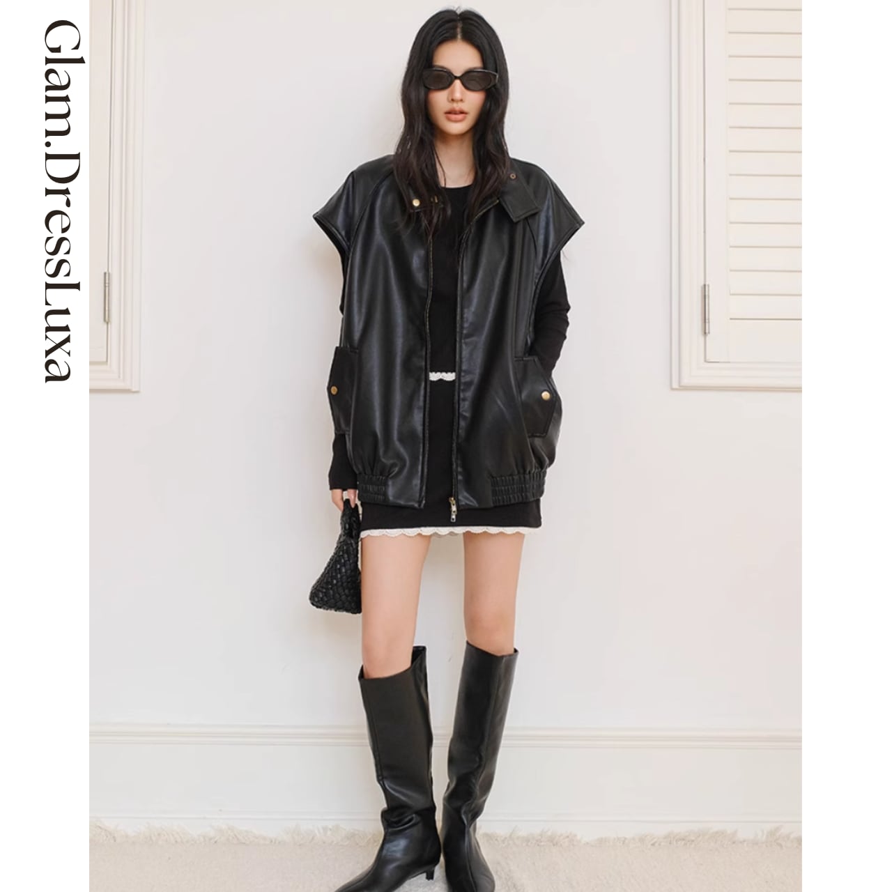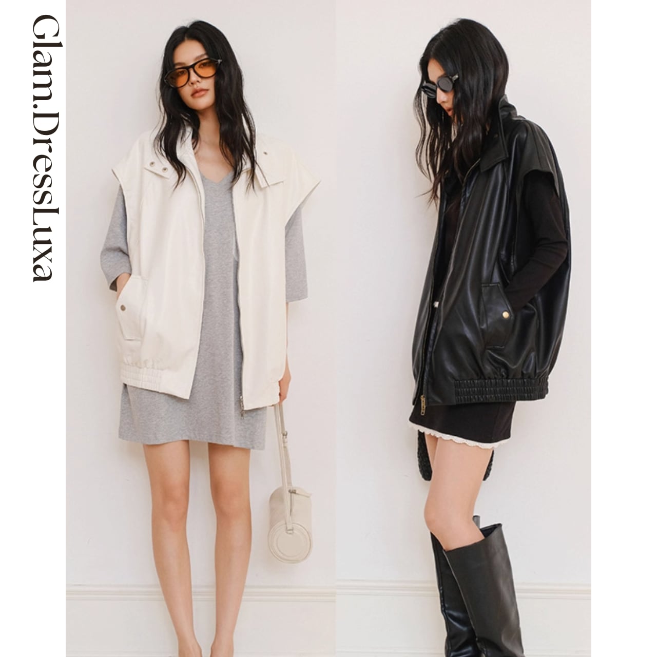 ・モード感漂うレザーベスト。しなやかなフェイクレザー素材を使用し、存在感のあるシルエットながらも軽やかな着心地を実現。