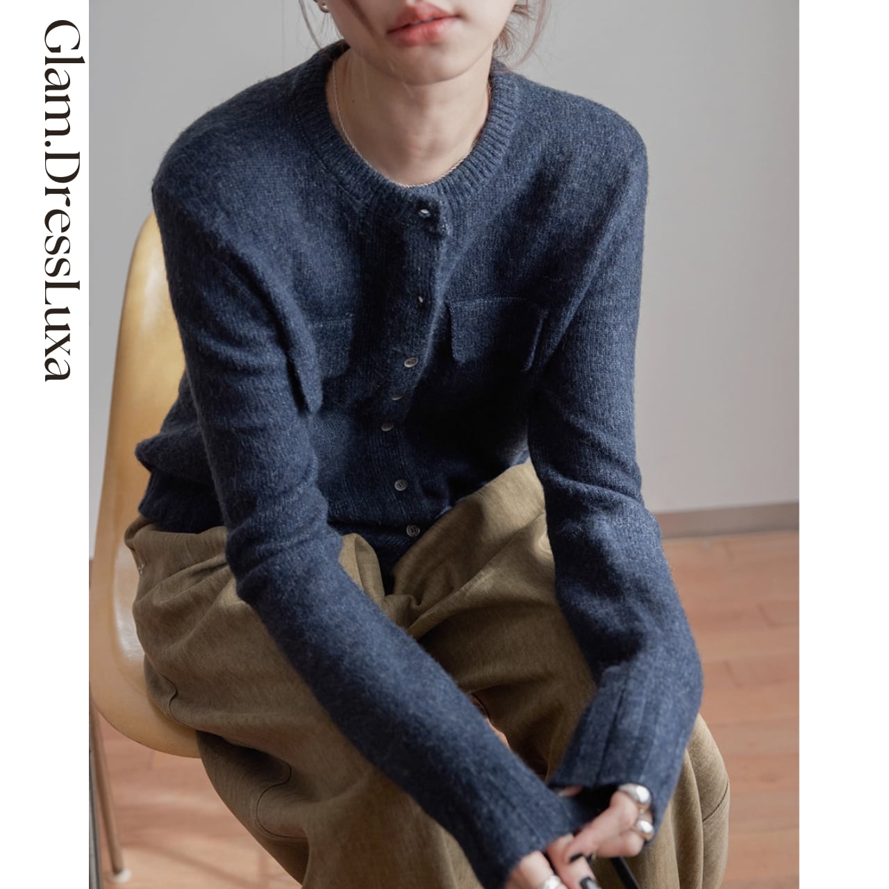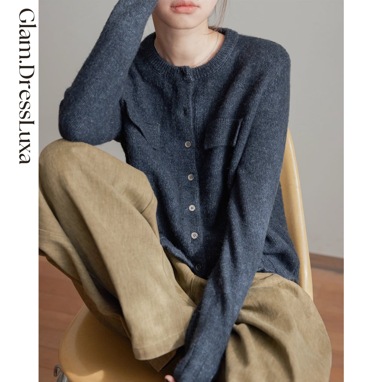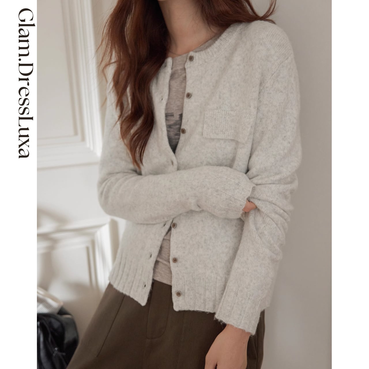 ・ふんわりとした起毛感のある生地を使用した、ナチュラルな雰囲気のクルーネックカーディガン。胸元にあしらったフラップポケットがアクセントとなり、カジュアルさの中に上品さをプラスしてくれます。デニムやワイドパンツとの相性も良く、ラフな休日スタイルからきれいめなレイヤードまで幅広く活躍◎ シンプルで長く愛用できる一枚です。