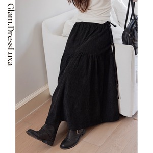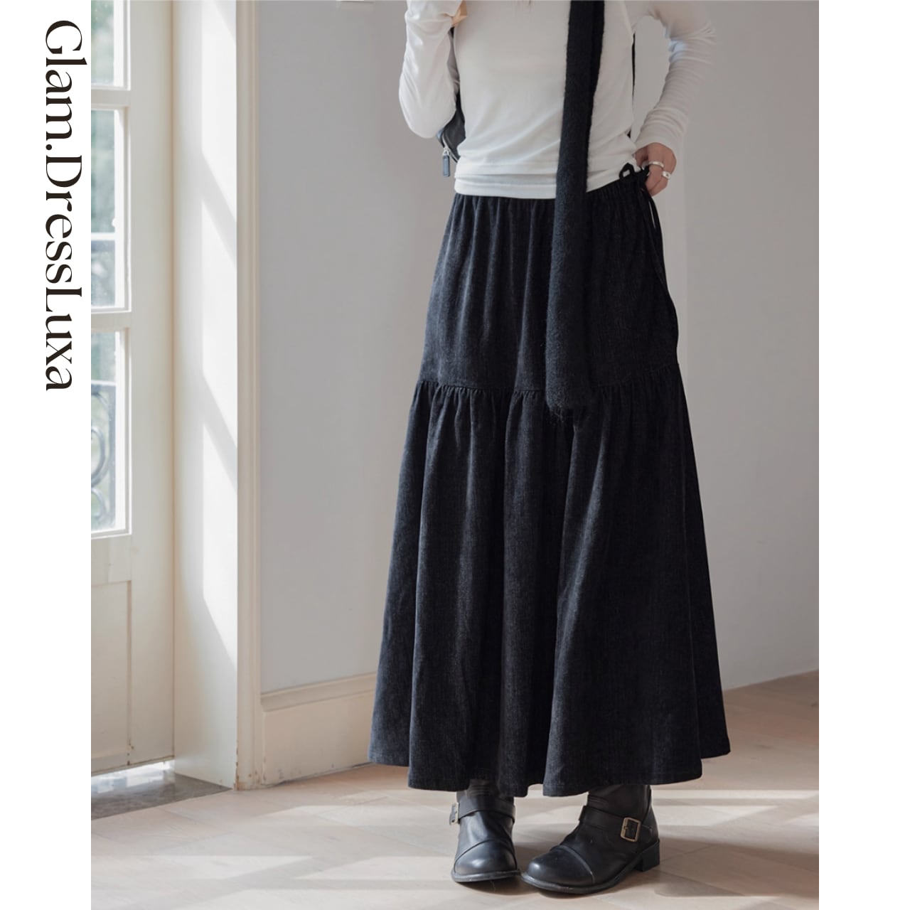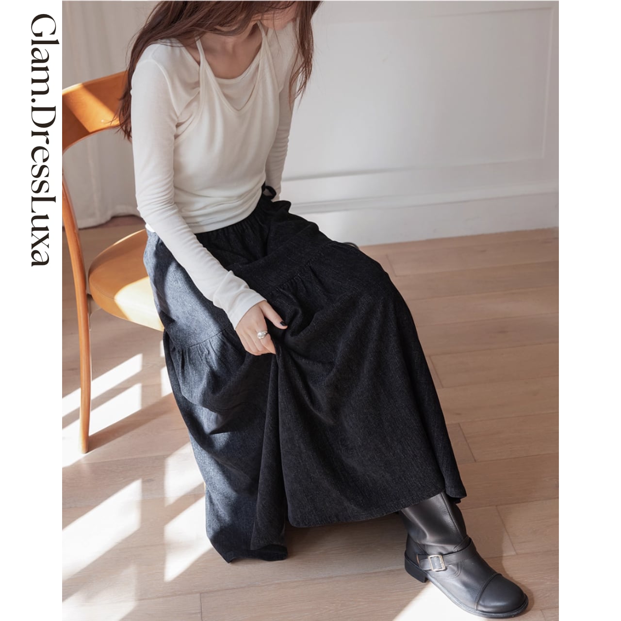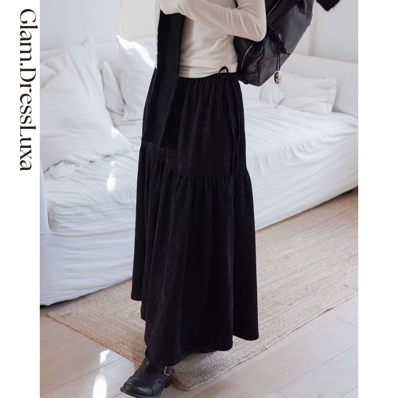 ・柔らかなスエード調素材で仕立てた、存在感のあるティアードロングスカート。