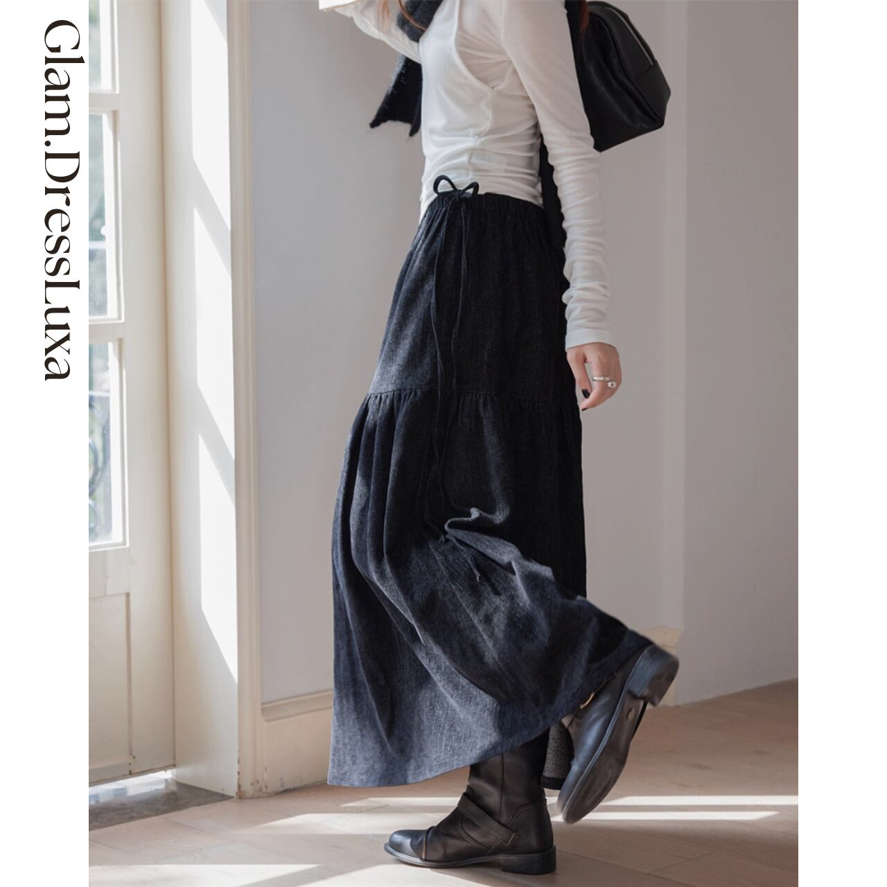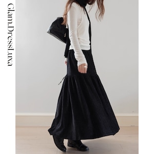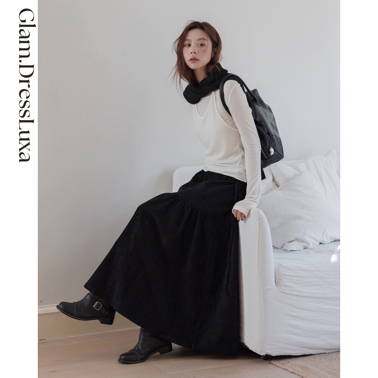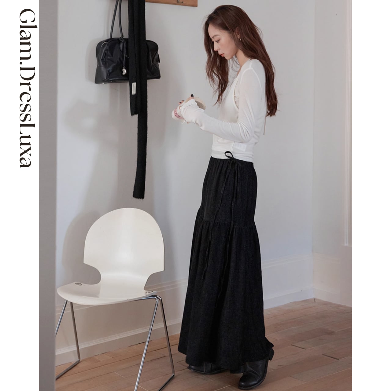 ・柔らかなスエード調素材で仕立てた、存在感のあるティアードロングスカート。