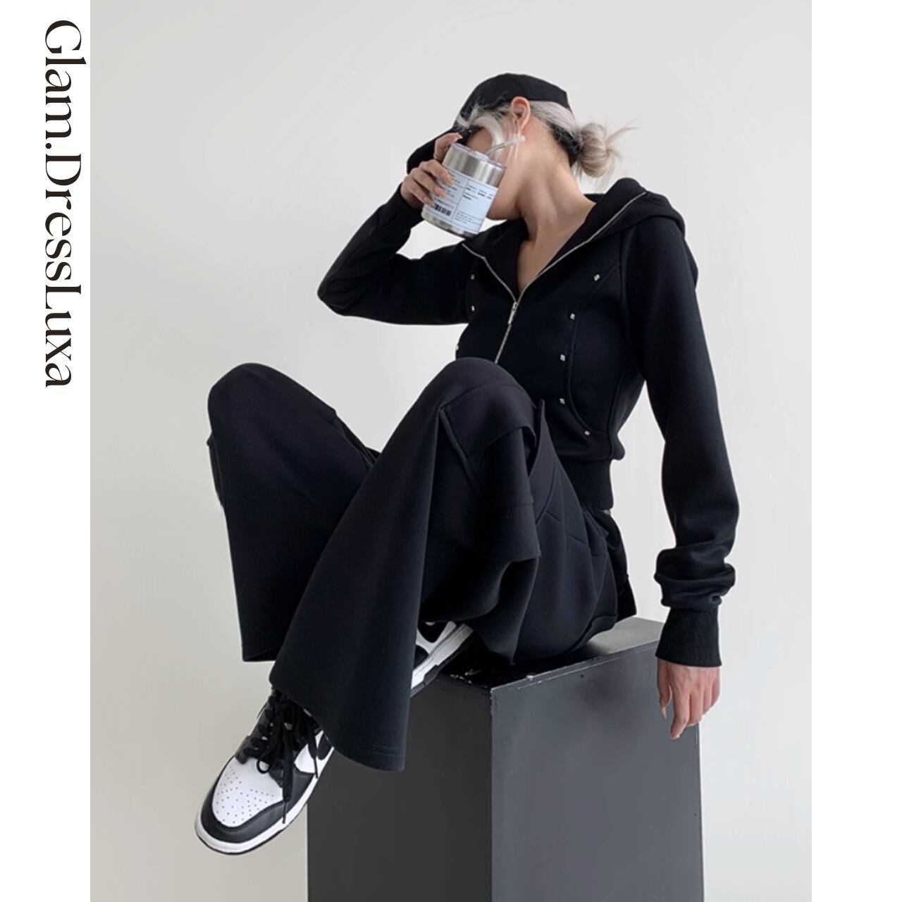 ・シンプルなシルエットにスタッズディテールをプラスした、モードな印象のジップフーディー。クロップド丈で程よい抜け感を演出しつつ、細身のラインがスタイリッシュに決まります。ジップを開けてラフに羽織るも良し、閉めてクールに着こなすも良し。カジュアルな中にもエッジを効かせたデザインで、ストリートからシティスタイルまで幅広く活躍するアイテムです。