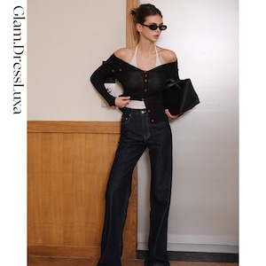 ・デコルテを美しく魅せるオフショルダーデザインと、しなやかなリブ編みが織りなす洗練されたカーディガン。