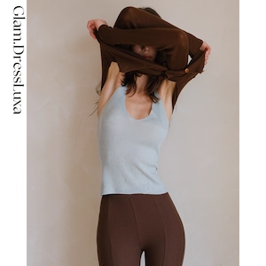 インナーには、程よいフィット感のホルターニットをセットし、女性らしさと抜け感を同時に演出。