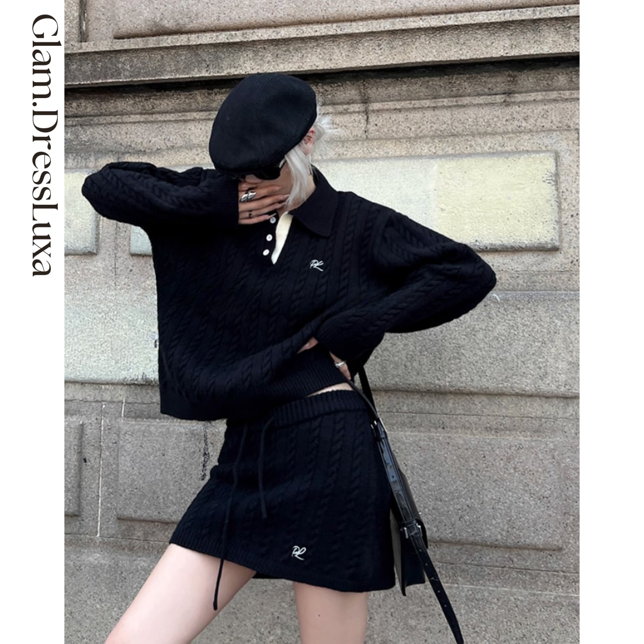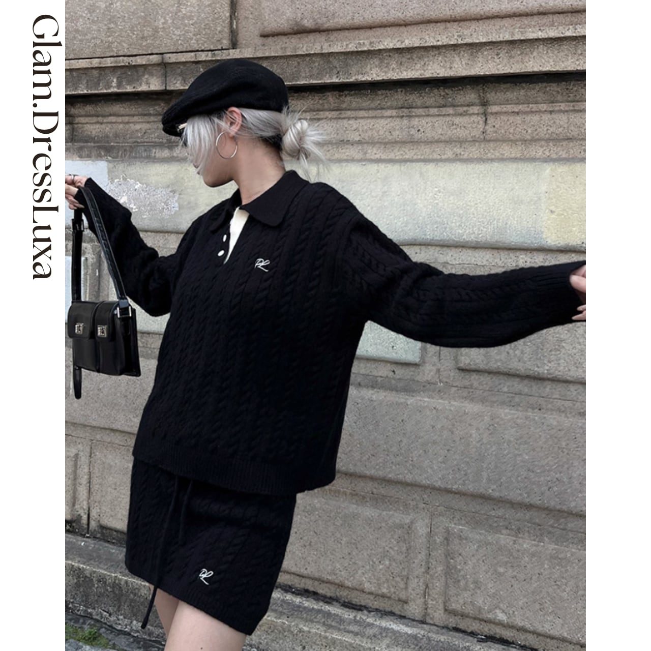 ・立体感のあるケーブル編みが上品な印象を与えるニットセットアップ。