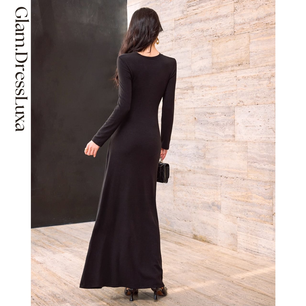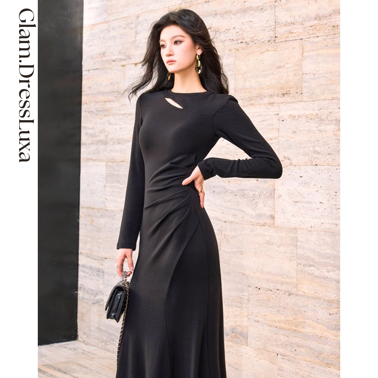伸縮性のある素材で身体にフィットしながらも動きやすく、パーティーやディナーシーンにも映える一枚。