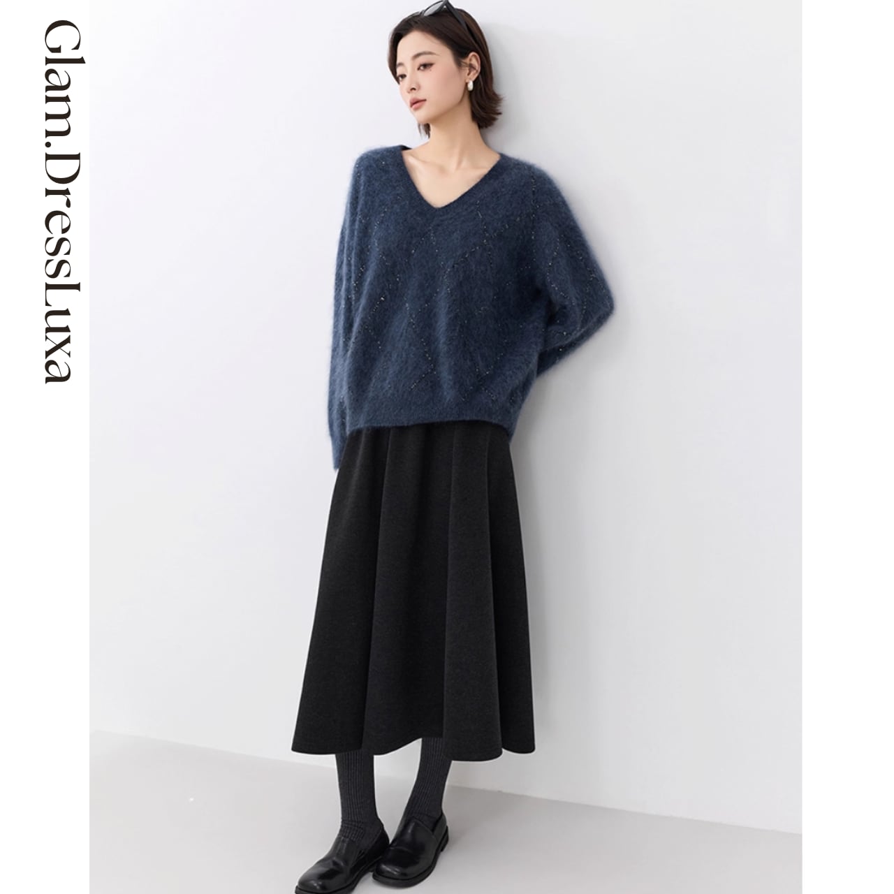 優しいVネックラインとゆるめのシルエットが、肩の力を抜いた大人のリラックススタイルを演出します。