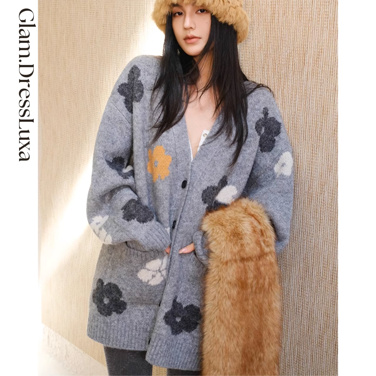 Fluffy Flower Knit Cardigan_T1605