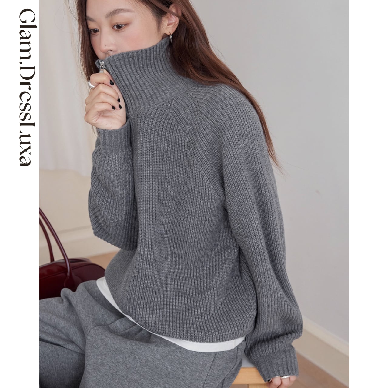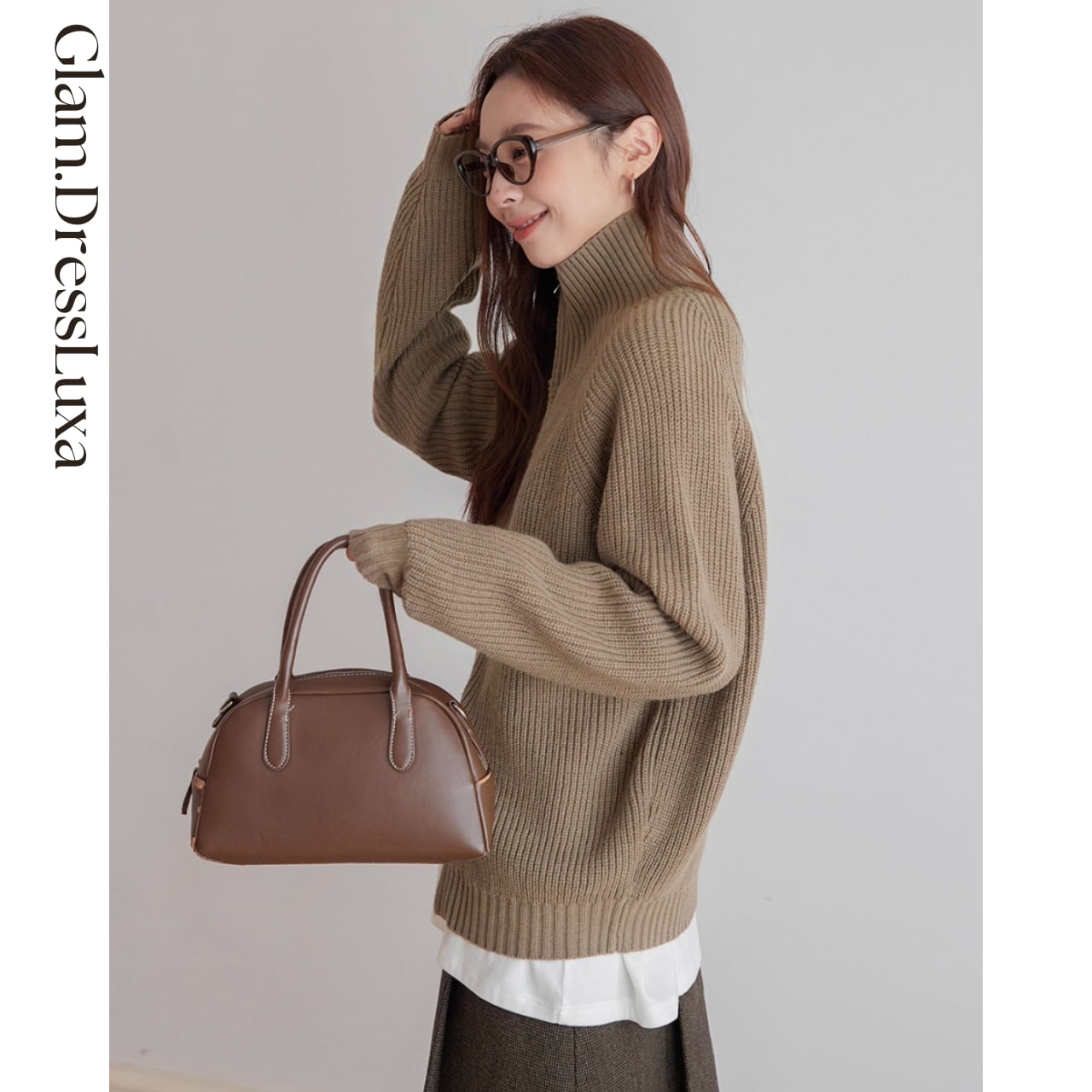 ハーフジップ仕様で、ジップの開閉により首元のニュアンスを変えられる万能アイテム。