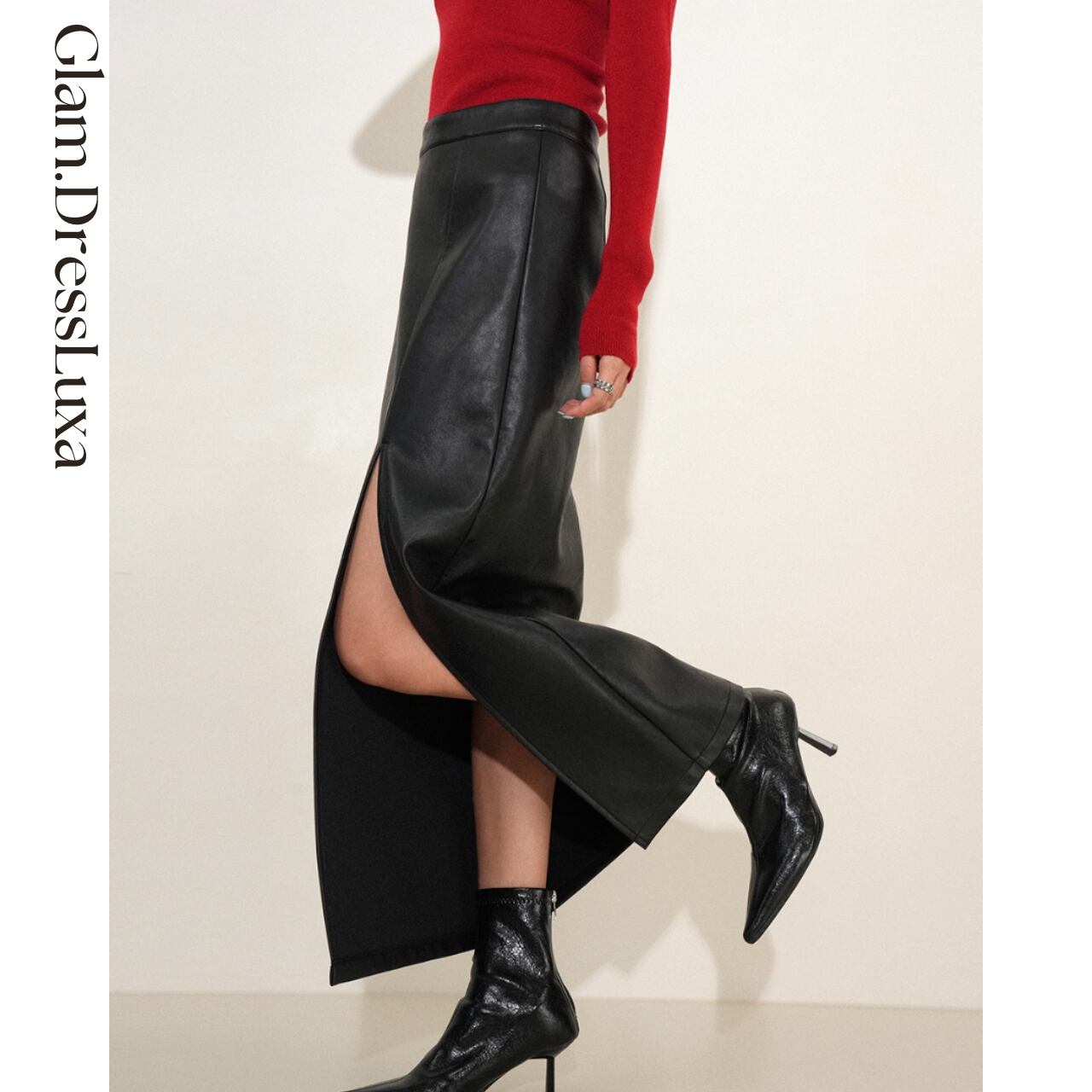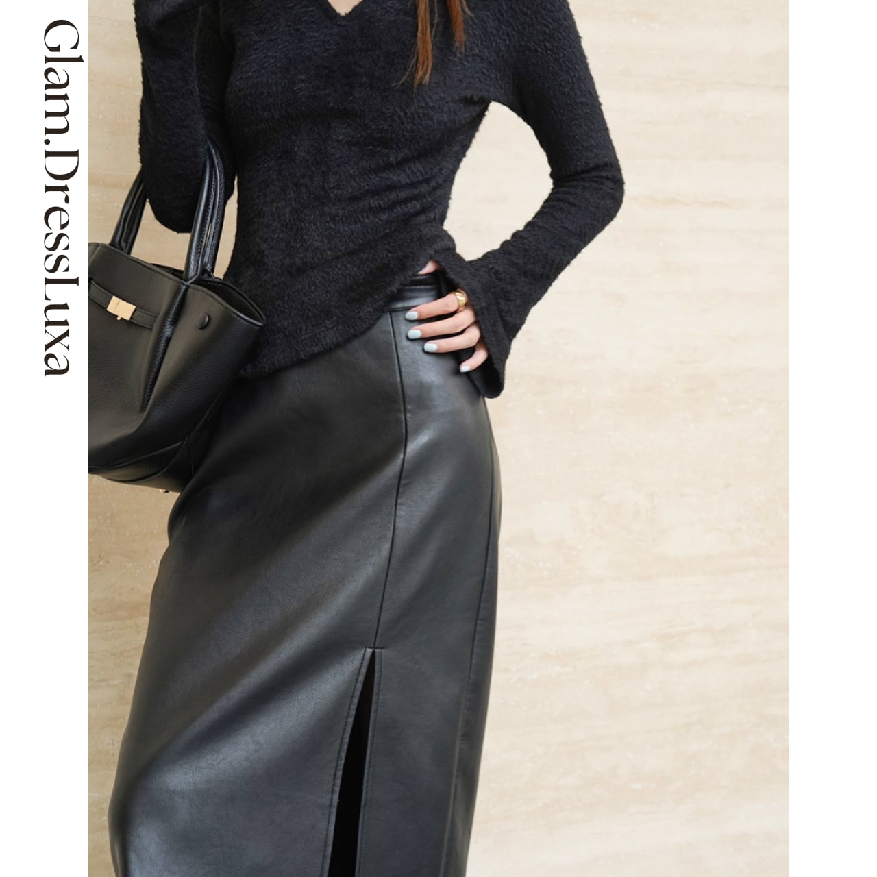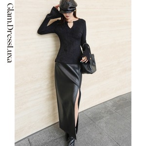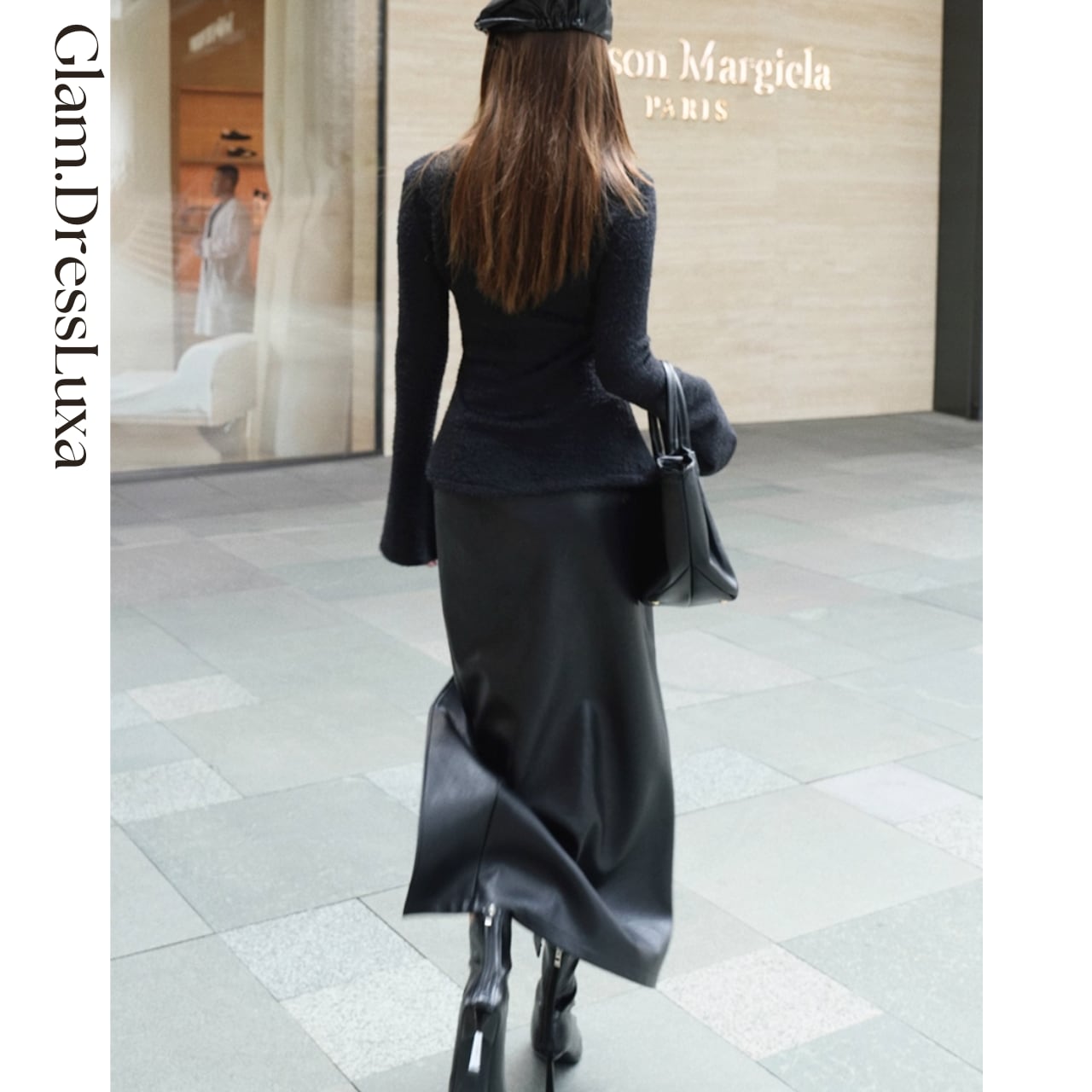 深めのサイドスリットが女性らしさを演出しながら、脚さばきも快適。