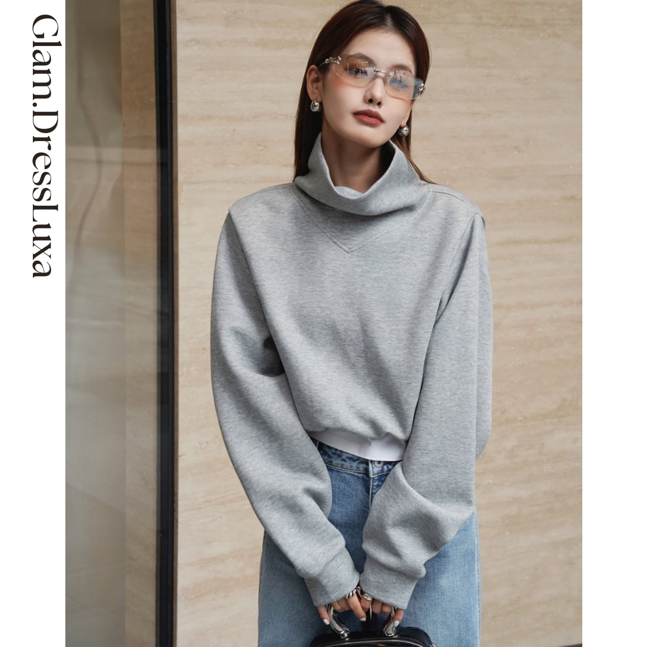 ・立ち上がりのあるハイネックが印象的なスウェットプルオーバー。