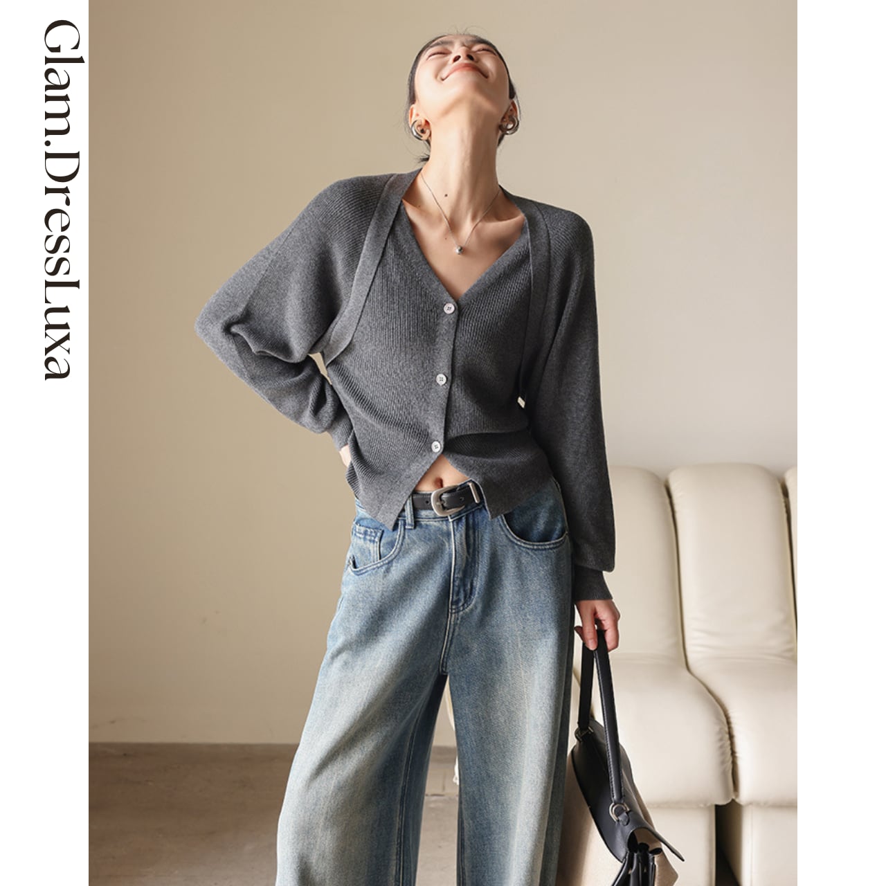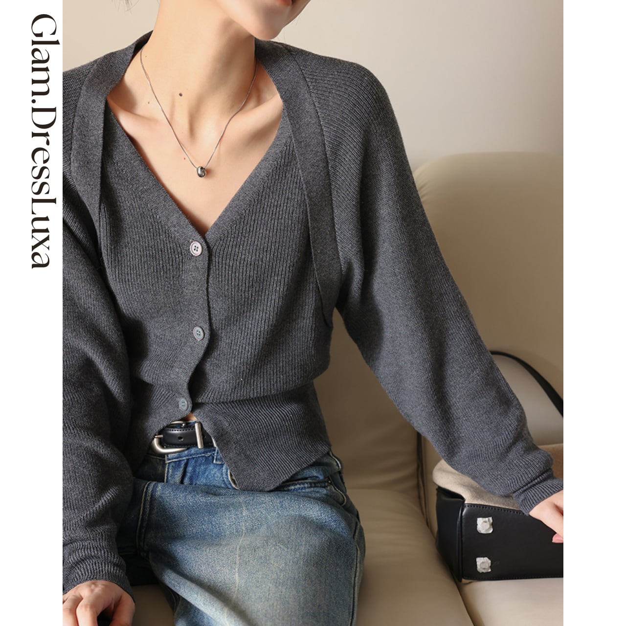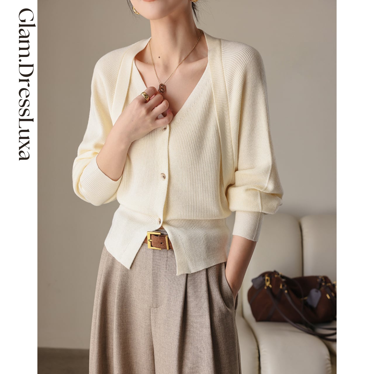 ・フェイクツーピース仕様の上品なニットカーディガン。