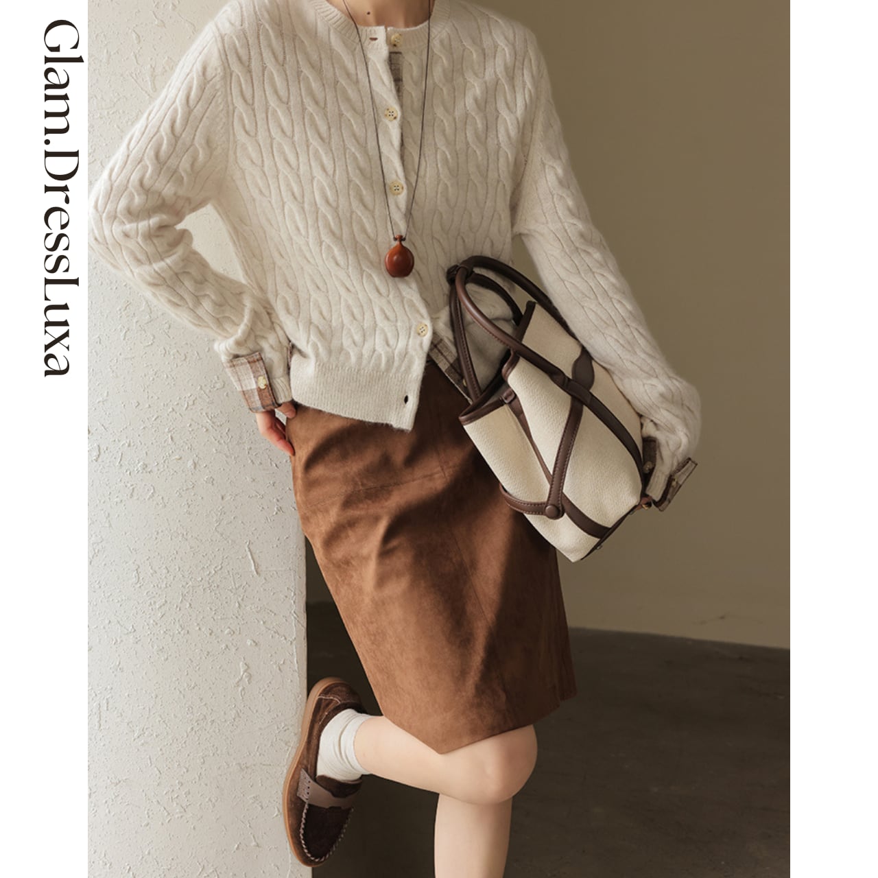 シンプルながらも温かみのあるブラウンカラーで、秋冬のスタイリングに自然と馴染む1枚です。