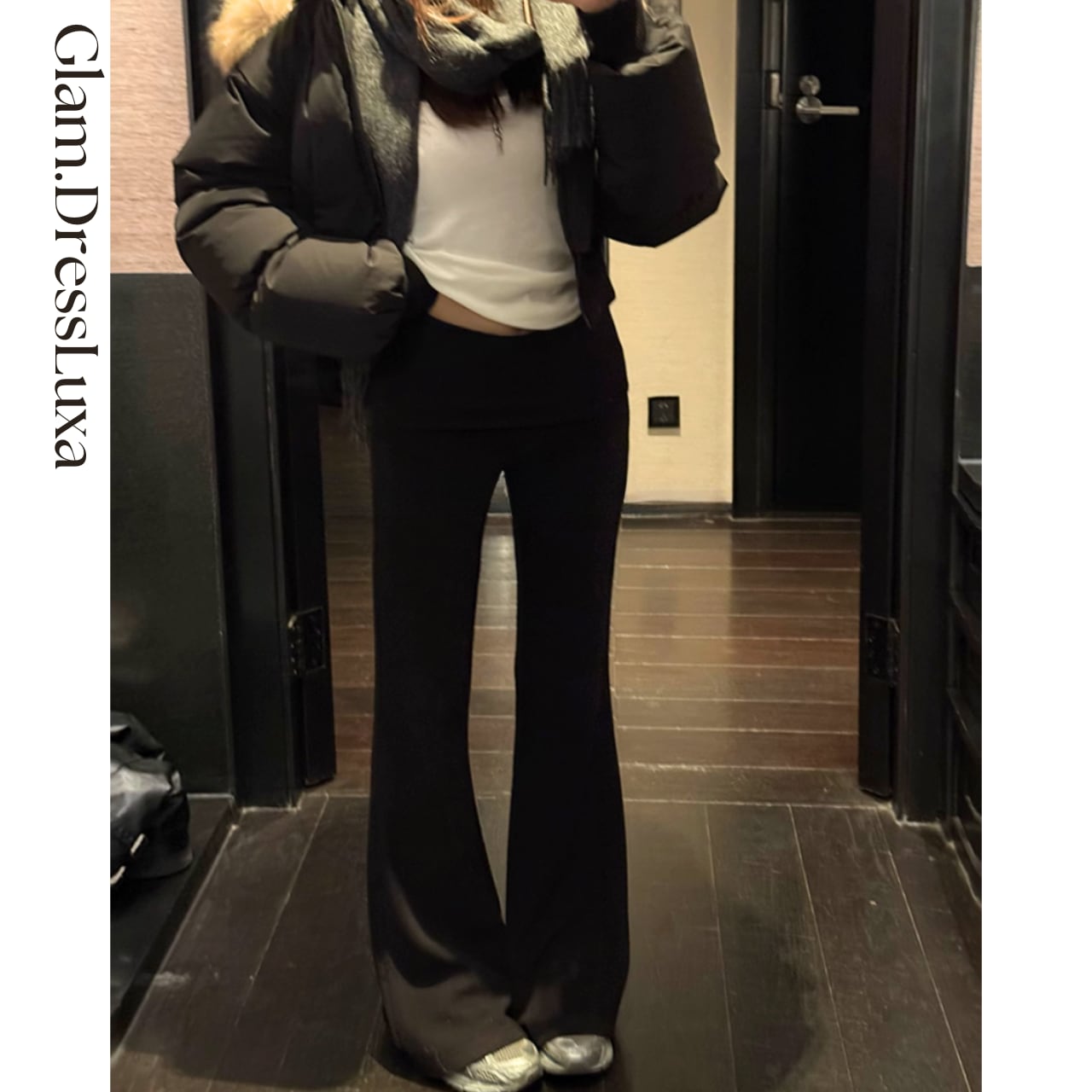 ・脚のラインを美しく見せる美脚シルエットのフレアパンツ。