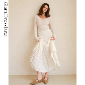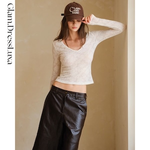 華奢な鎖骨ラインを美しく引き立てる深めのVカットが特徴で、軽やかで柔らかなニットが身体に程よくフィットします。