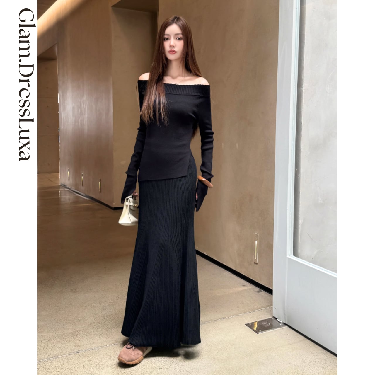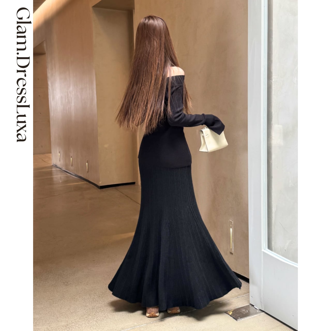 ・女性らしいラインを美しく引き立てるニットセットアップ。