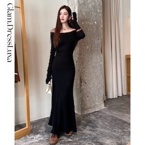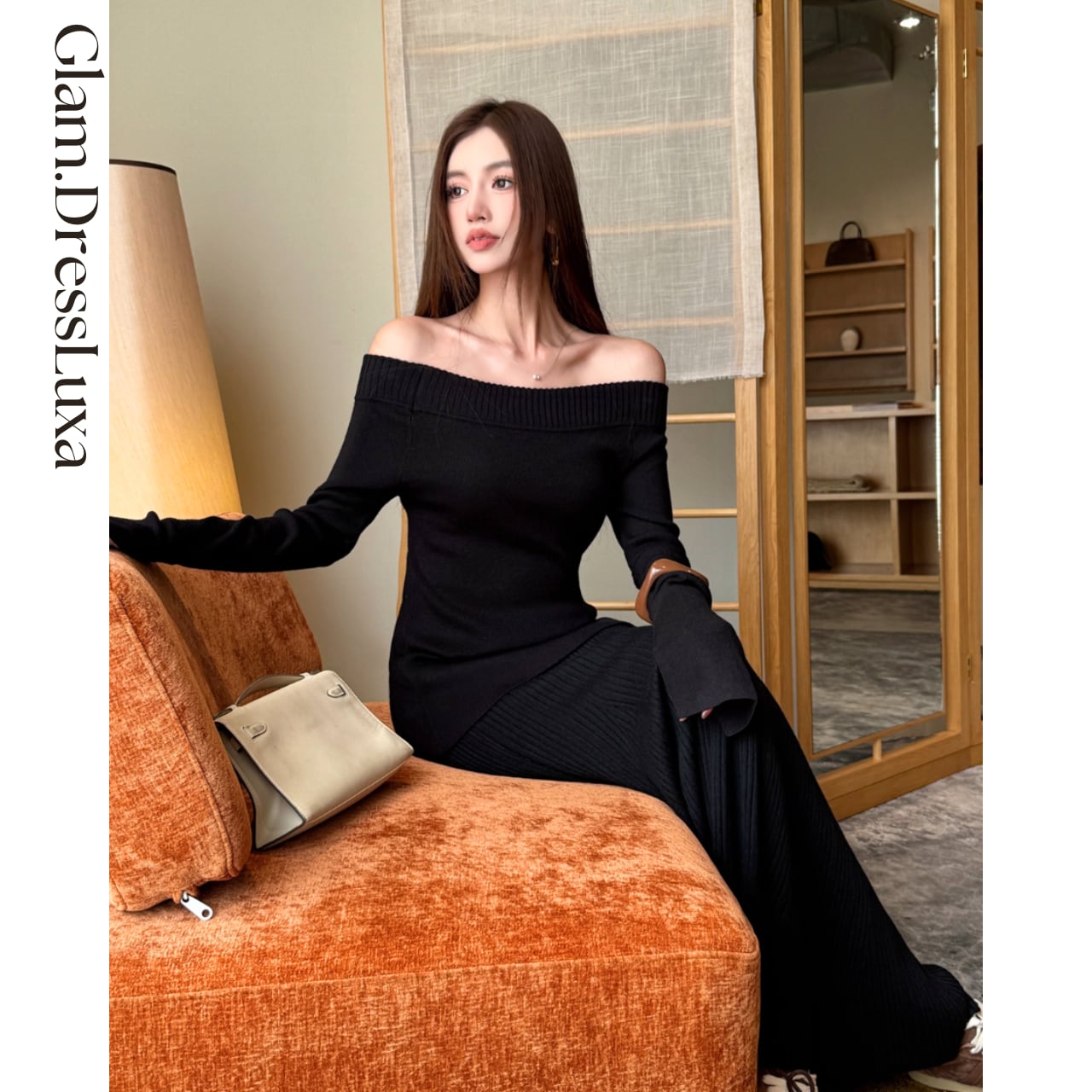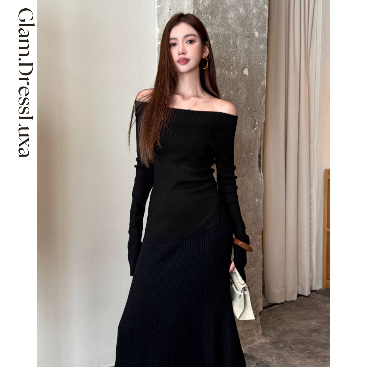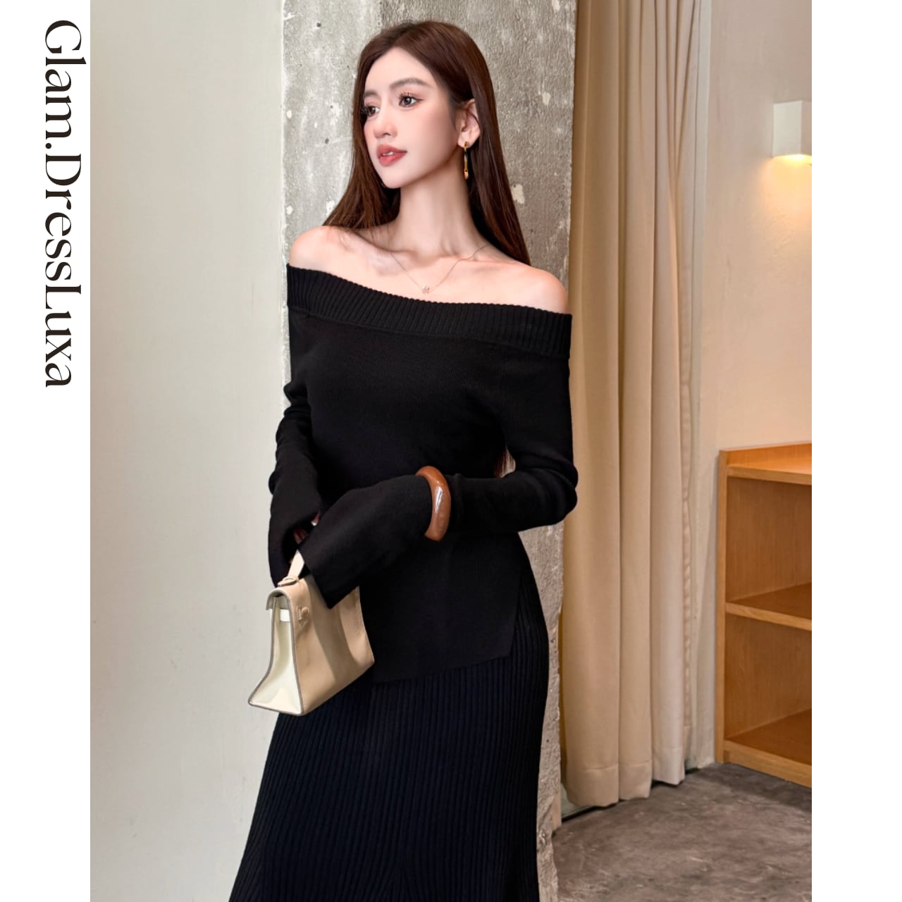 肩を見せるオフショルダーデザインがエレガントなムードを漂わせ、体に沿うシルエットでスタイルアップを叶えます。