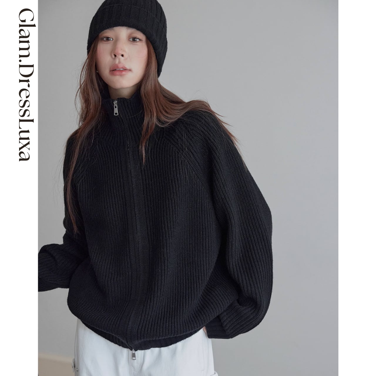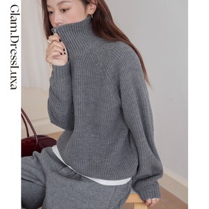 ・立体感のあるリブ編みが上品な印象を与える、Wジップ仕様のハイネックニット。