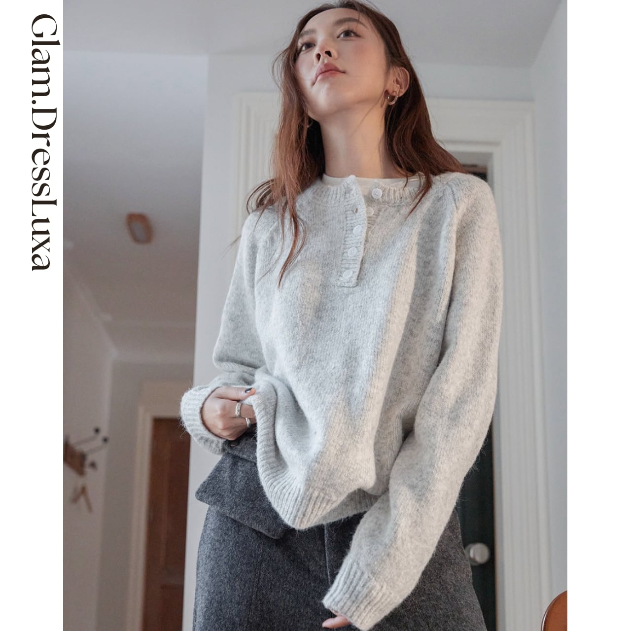 ・ふんわりとしたウール混素材で仕立てた、クラシックな印象のボタンニットプルオーバー。