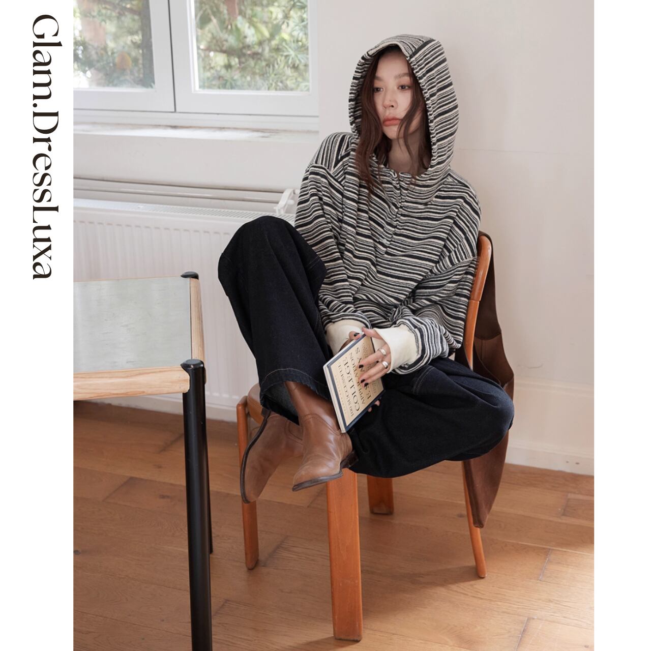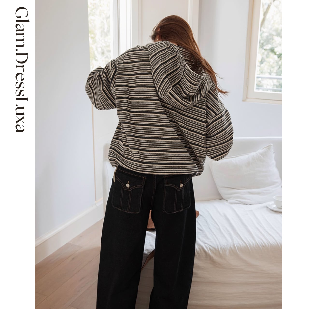 ・立体感のあるストライプ柄が印象的なフーディープルオーバー。