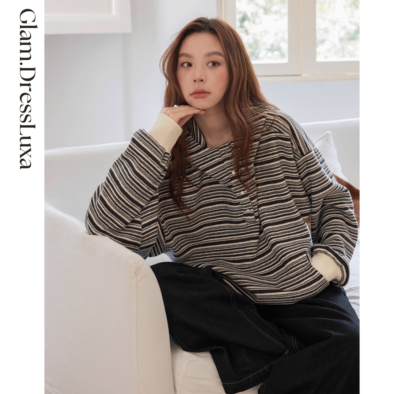 Stripe ボリューム フーディー Pullover/2color_T1629