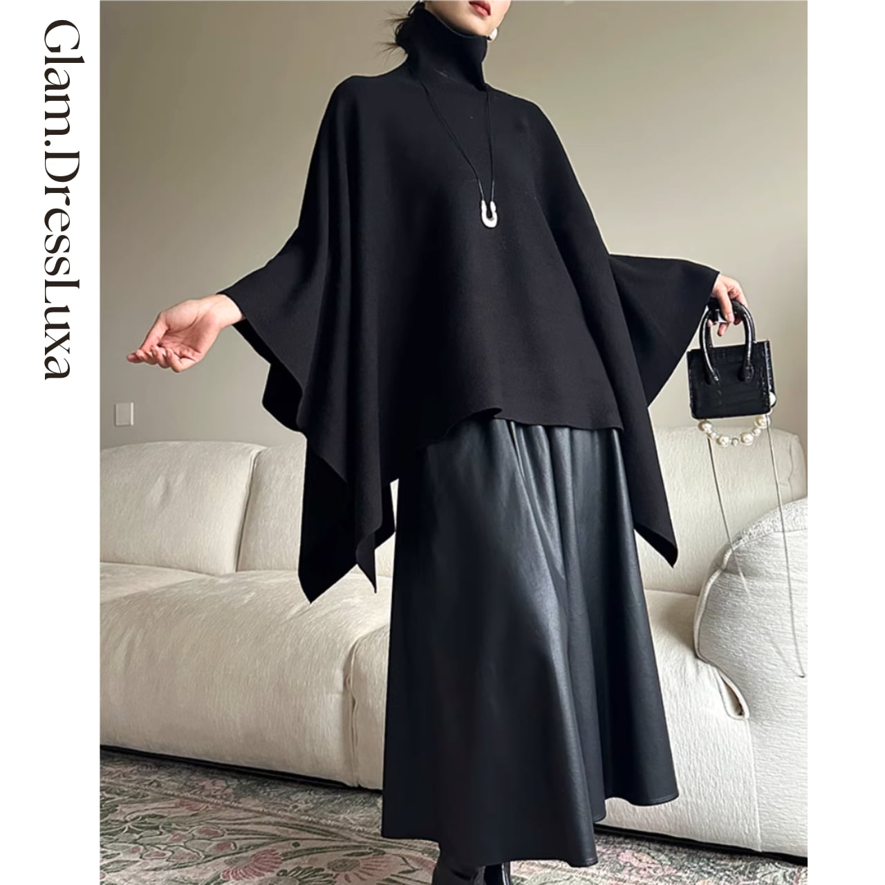 ・ゆったりとしたケープシルエットが印象的なハイネックニットトップ。