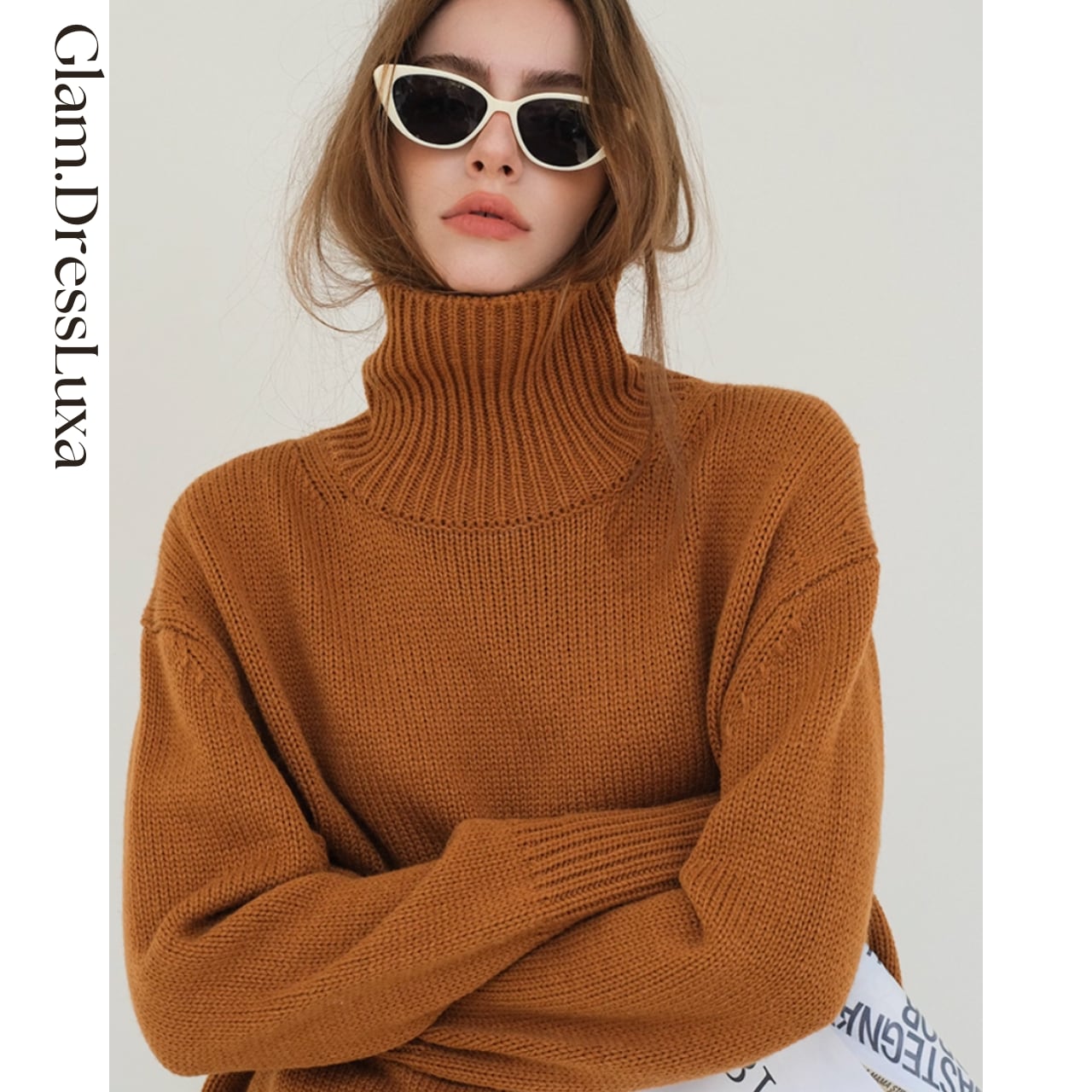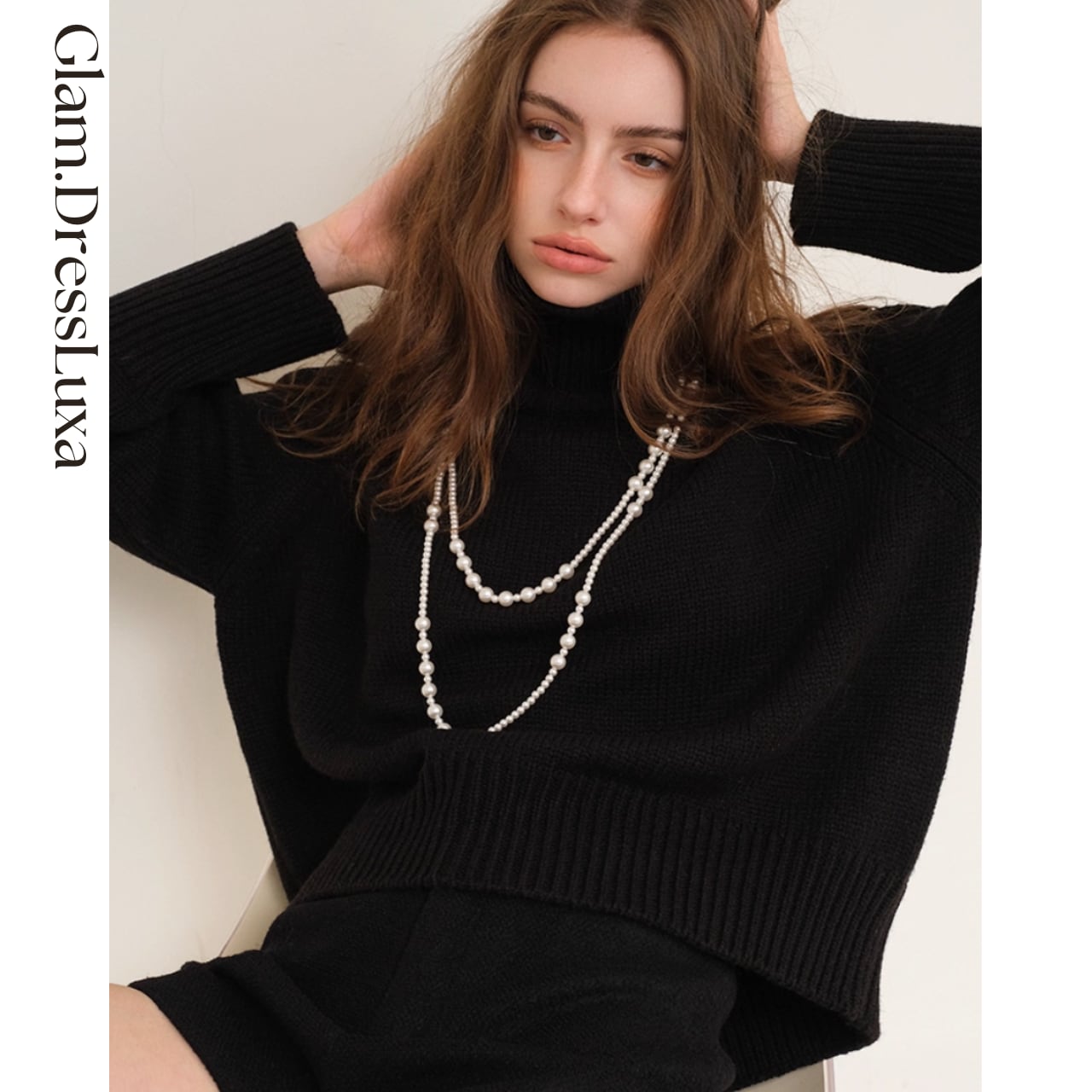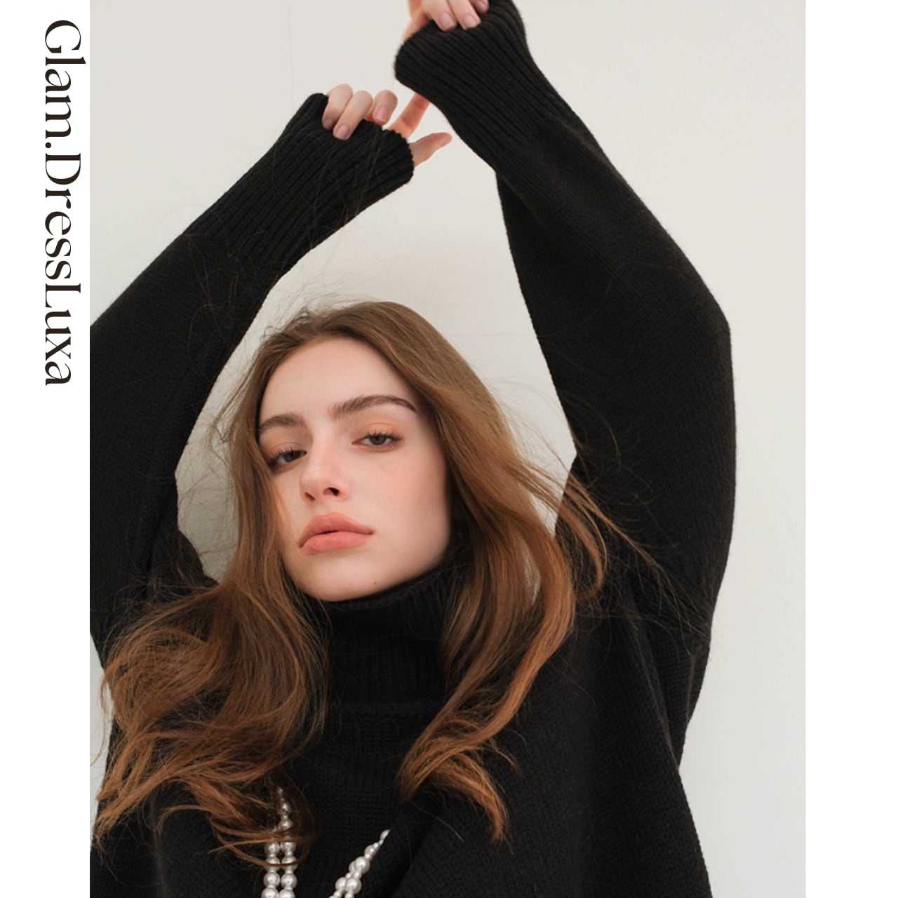 ・立ち上がりの美しいハイネックと、ゆるやかなシルエットが魅力のニットプルオーバー。