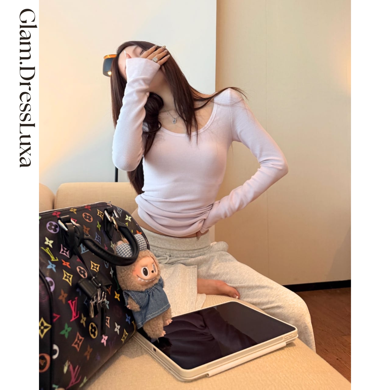 デコルテをきれいに見せるラウンドネックデザインで、1枚でもインナーとしても活躍。