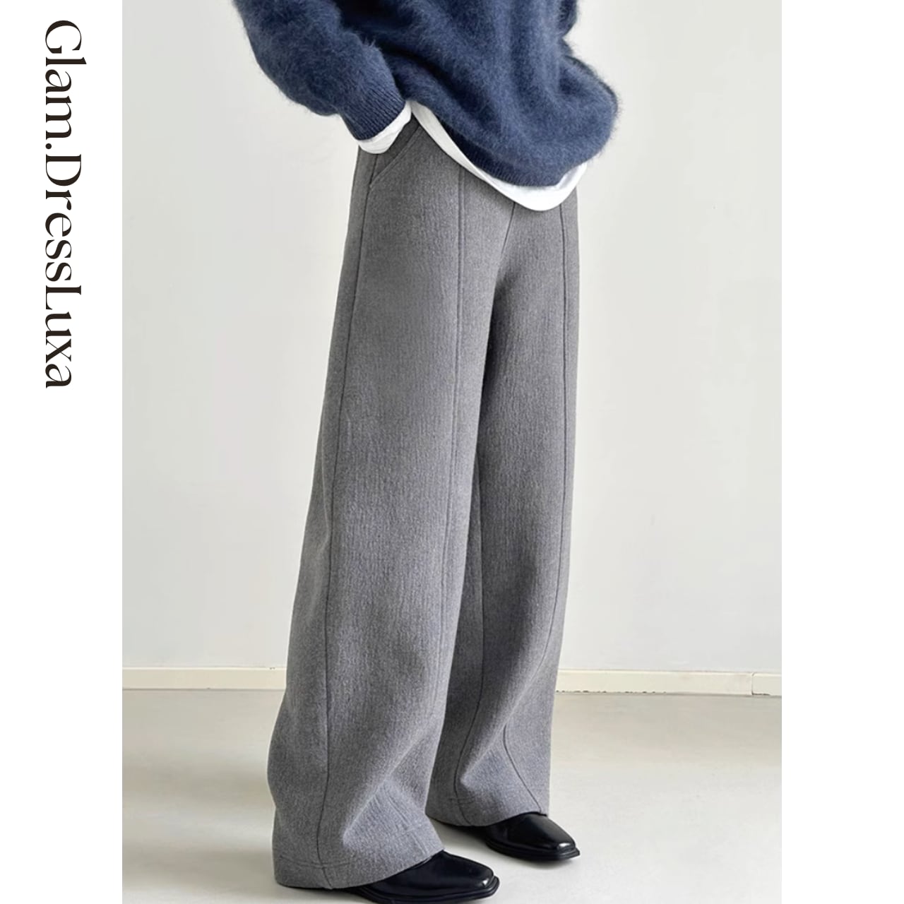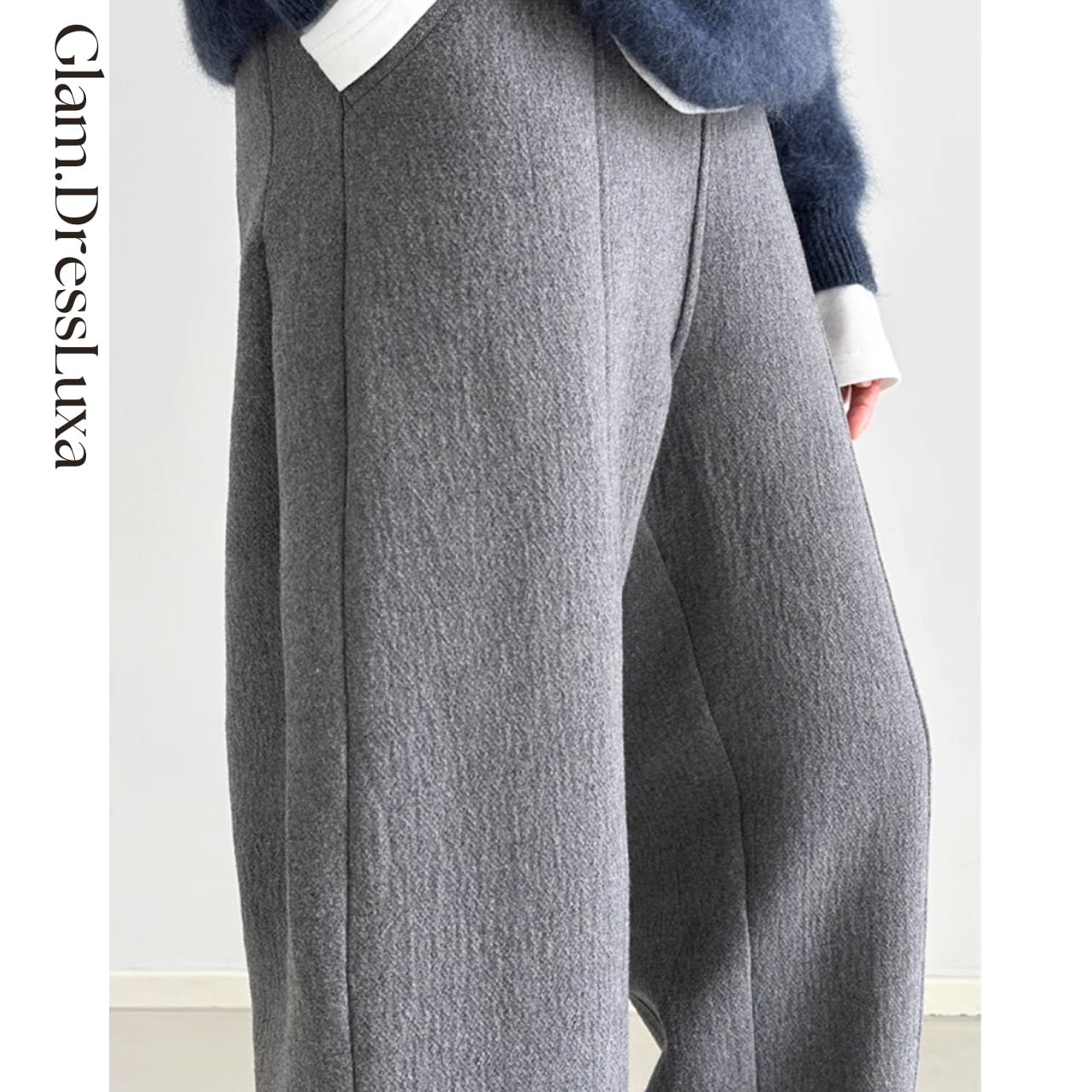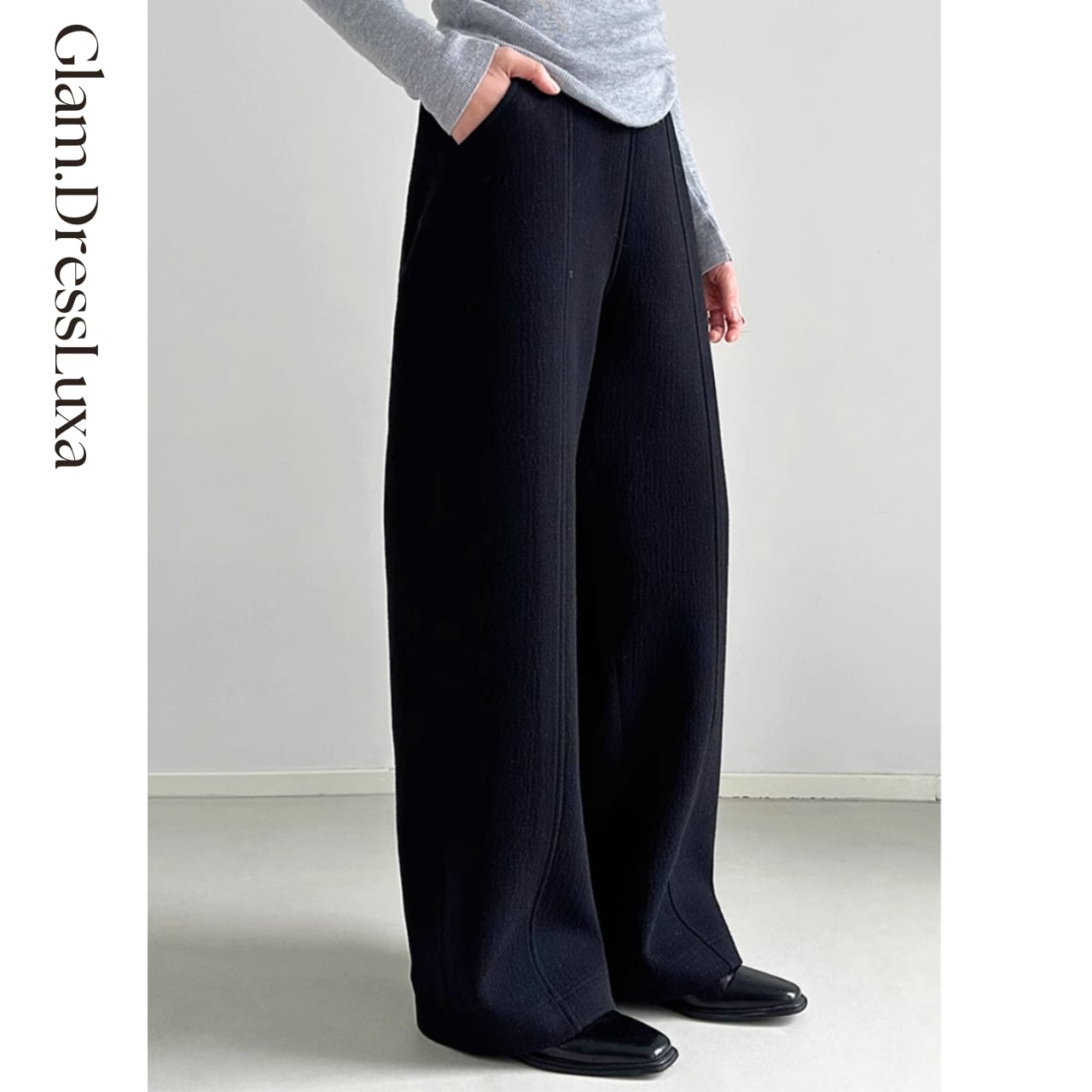 ・上品なウール混素材を使用したセンタープレスワイドパンツ。