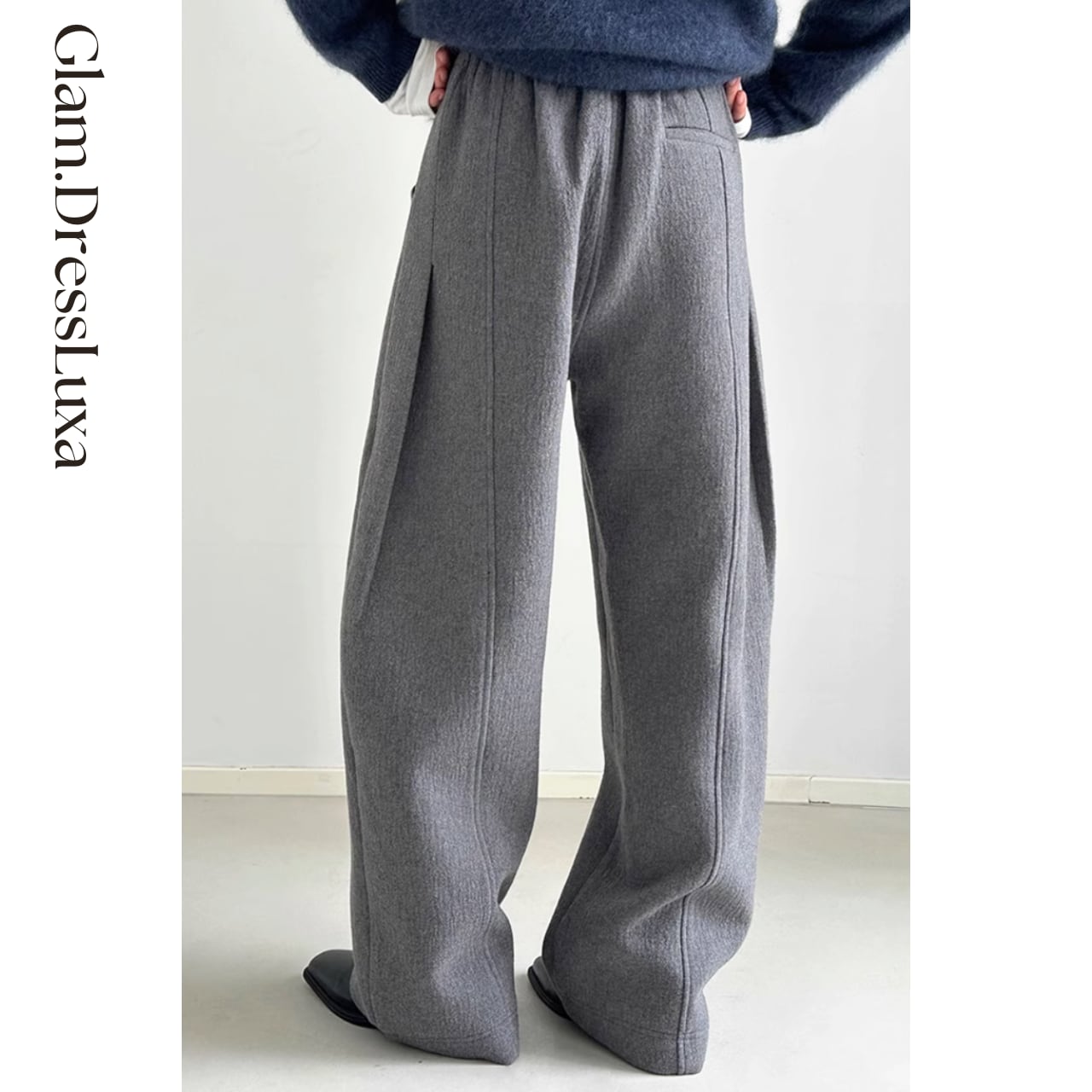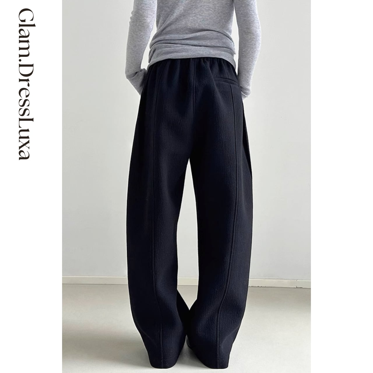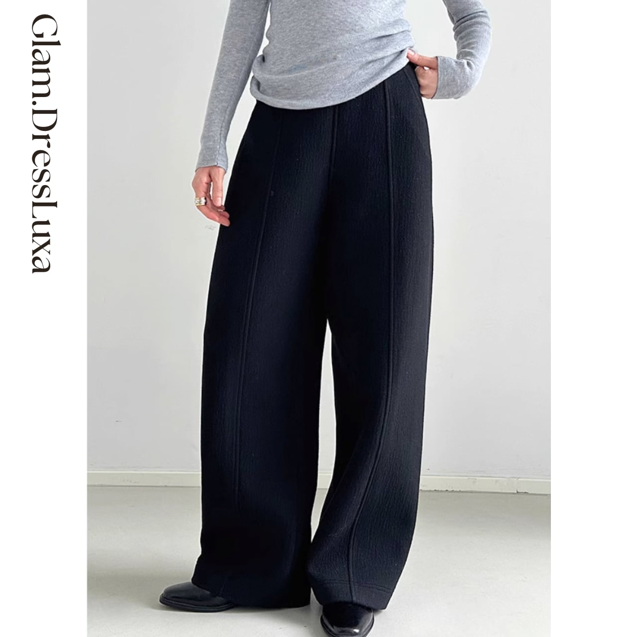・上品なウール混素材を使用したセンタープレスワイドパンツ。