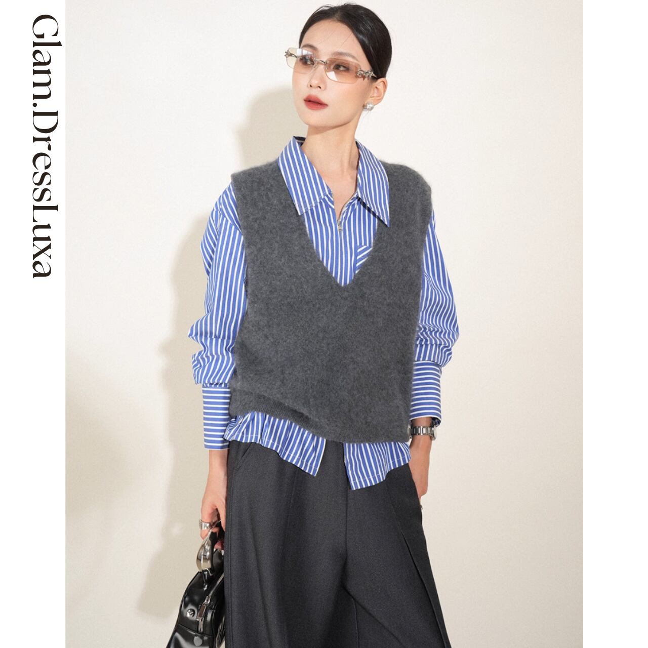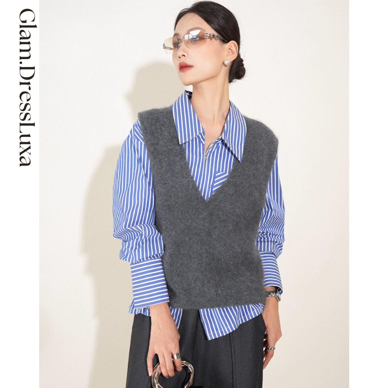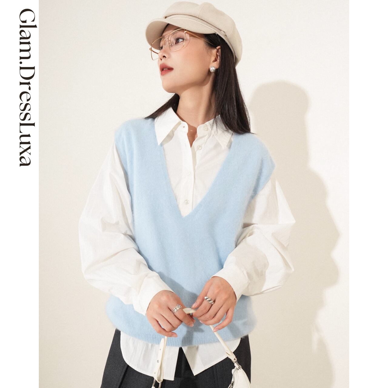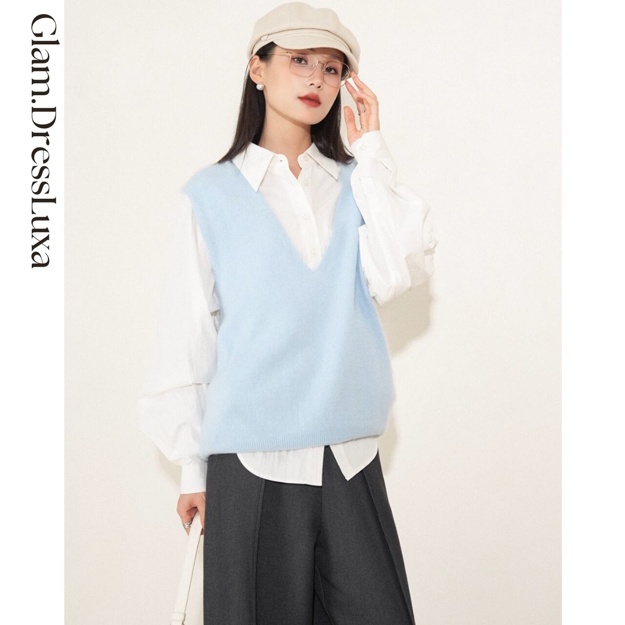 ・柔らかなウールブレンド素材を使用した、季節の変わり目にぴったりなVネックベスト。