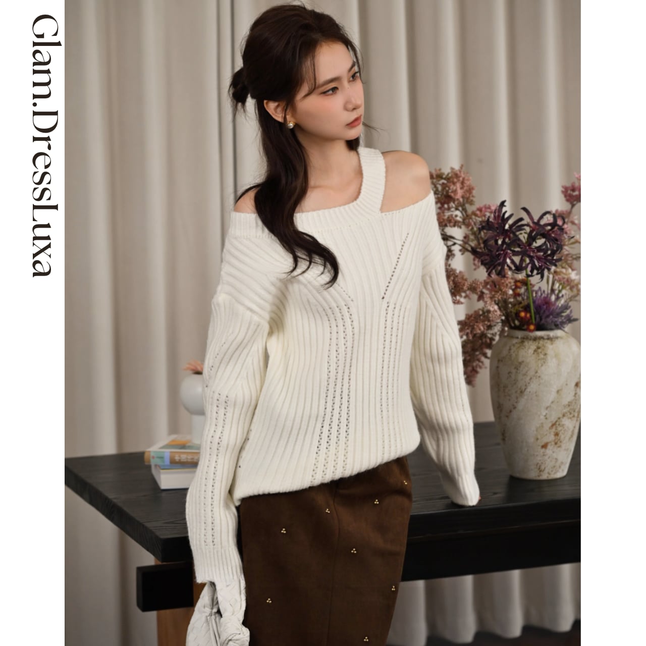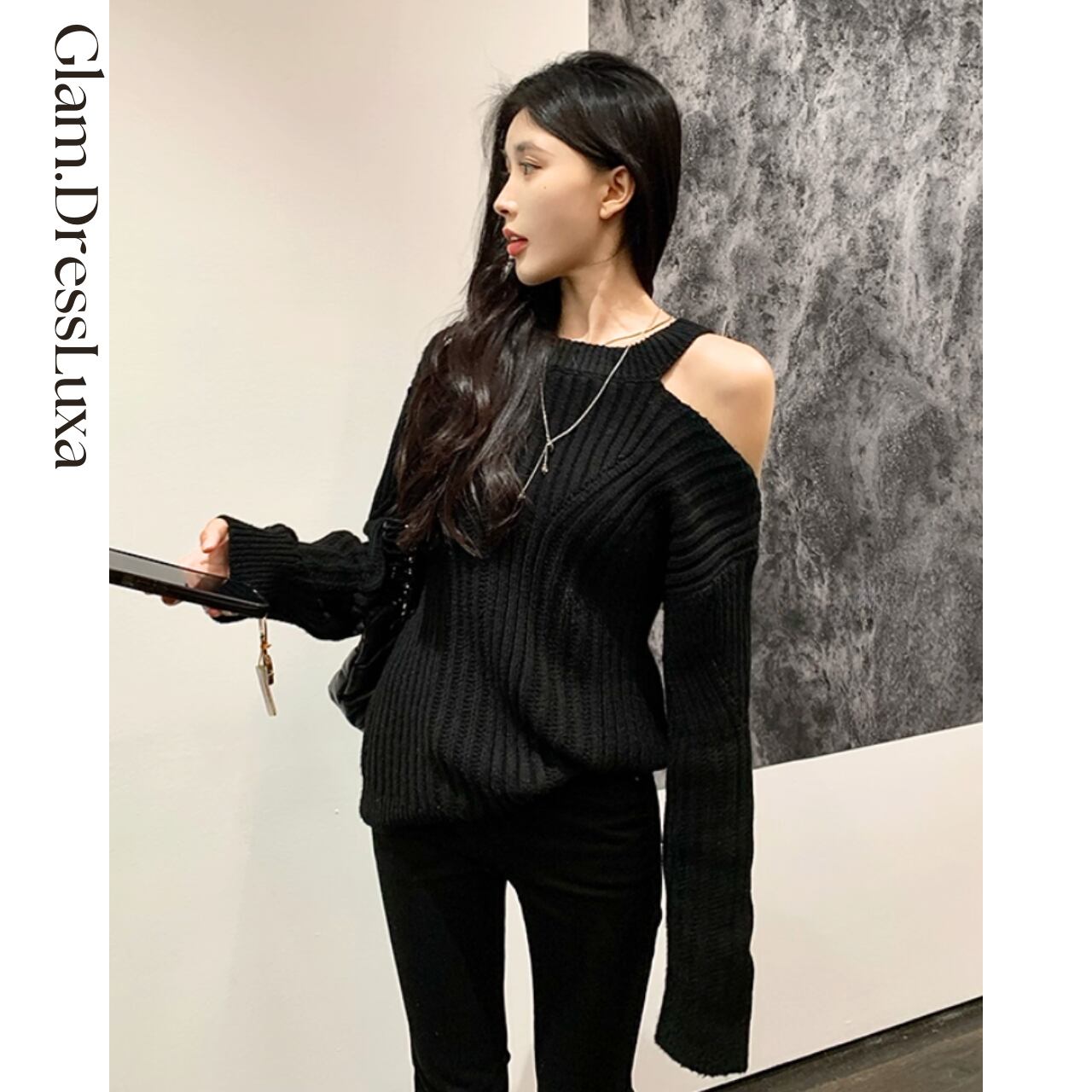 Asymmetry Shoulder Knit/2color_T1644